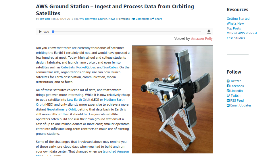 Amazon EC2 made compute power accessible on a cost-effective, pay-as-you-go basis. AWS Ground Station does the same for satellite ground stations. Instead of building your own ground station or entering in to a long-term contract, you can make use of AWS Ground Station on an as-needed, pay-as-you-go basis. You can get access to a ground station on short notice in order to handle a special event: severe weather, a natural disaster, or something more positive such as a sporting event. If you need access to a ground station on a regular basis to capture Earth observations or distribute content world-wide, you can reserve capacity ahead of time and pay even less. AWS Ground Station is a fully managed service. You don’t need to build or maintain antennas, and can focus on your work or research.