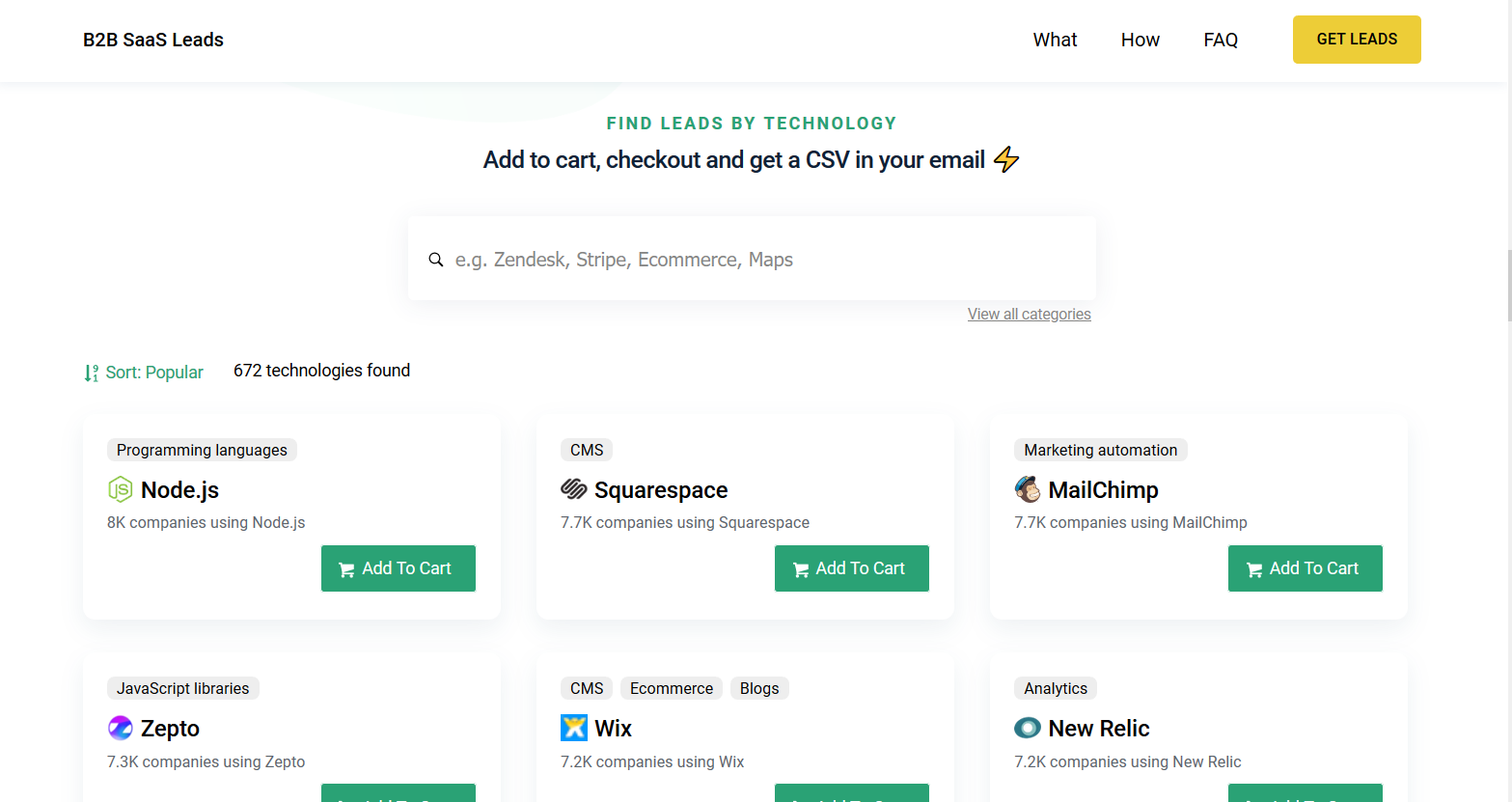 Built a B2B SaaS and wondering how to get customers? B2BSaaSLeads.com gives you a list of potential customers who have money and are already using similar technologies. Start selling in less than 60 seconds ?