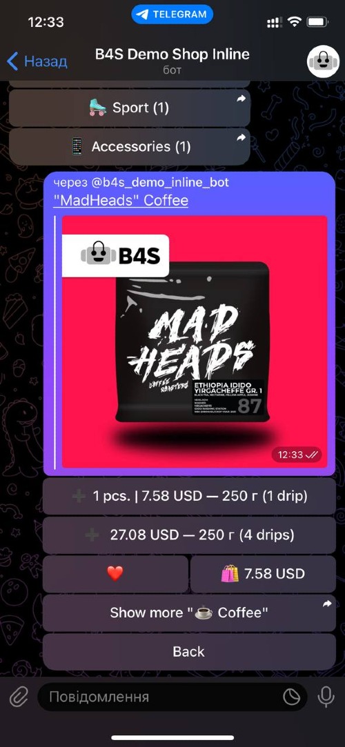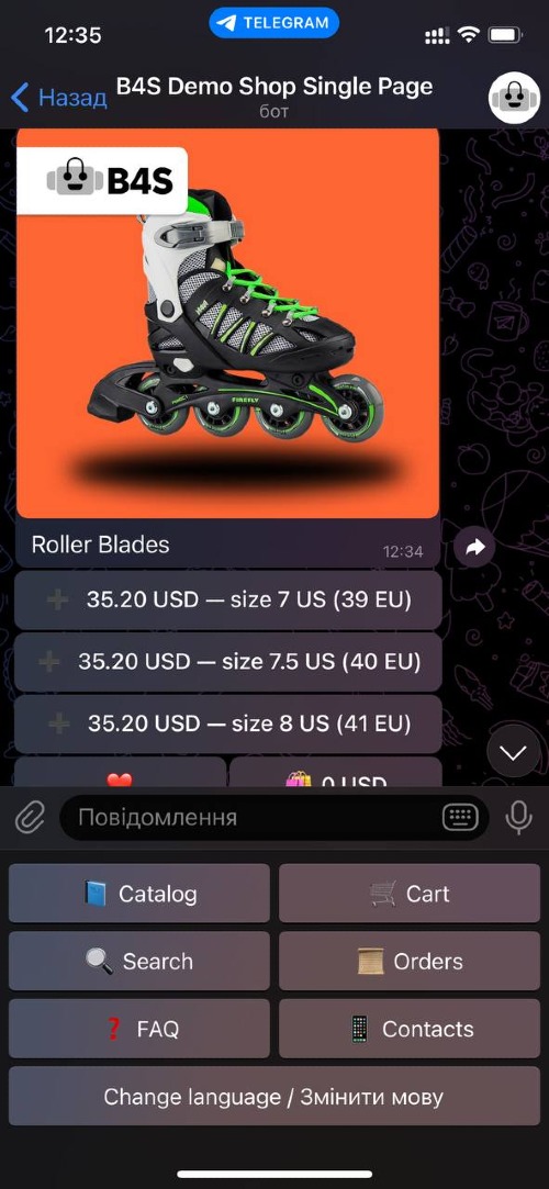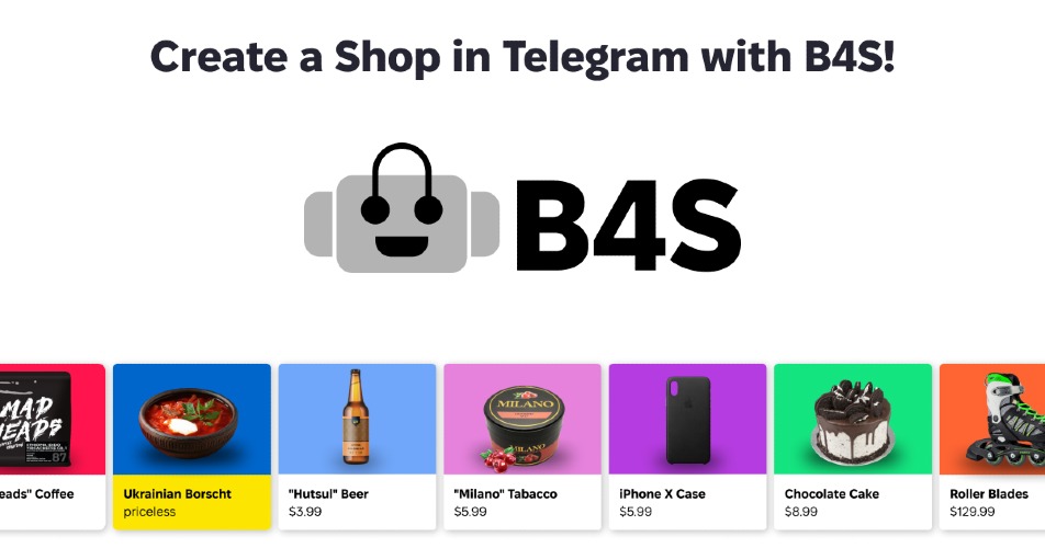 B4S lets you create a Telegram shop to Sell Products and Services. Accept payments directly in Telegram chat! Get 14 days of service for FREE! B4S is perfect for businesses of any scale that want to sell their products and services via Telegram! Bot4Shop features: * 14 day FREE trial period (no CC required) * Accept Payments directly via Telegram chat (Apple Pay & Google Pay supported) * Send Newsletters and Messages to users that opened your shop at least once * Generate Discount coupons * Create Branches of your main Shop Bot * Synchronize Shop Bot data with Google Sheets * Receive New Order Notifications to your Telegram or e-mail * Add any language localization to your Shop Bot * Ability to customize any text, button, label in the Shop Bot * Create Private Shop Bots * Dedicated Customer Support Create your first Shop Bot in 5 easy steps: https://b4s.me/en/