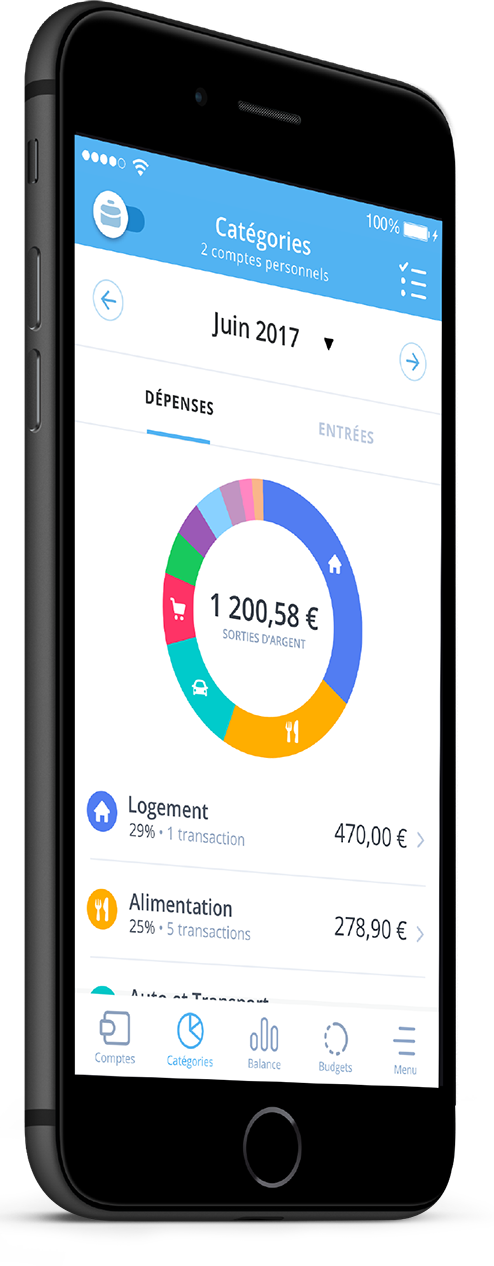 Managing your money becomes simple. Features:- -Categorization of expenditures Your expenses are categorized automatically: discover how much you spend in races, transport, restaurants ... No need to do your accounts ????. -Forecast of end-of-month balance The Budget helps you know where you are at and how much you will have left at the end of the month, etc.