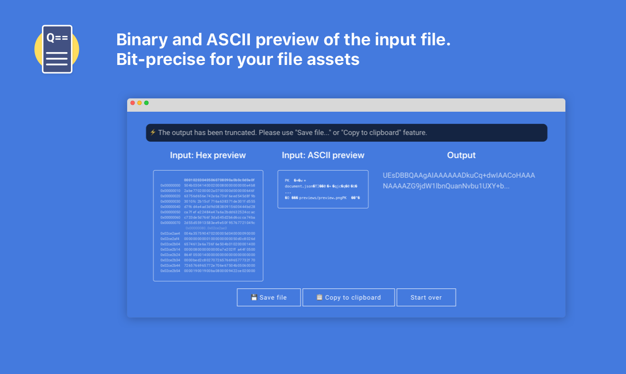 Handy tool to encode/decode Base64. This Ultimate tool supports large files, unicode characters and works completely browser-side. No uploads required.