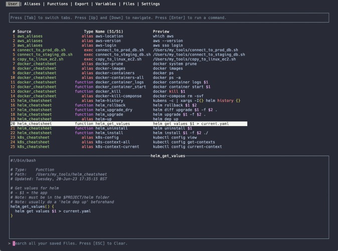 BashVault is a lightweight TUI (terminal UI) app that runs in full screen mode in your chosen emulator. It allows you to import local or remote resources, keep them in sync easily, manage them using a visual interface, and run them by simply pressing [ENTER].