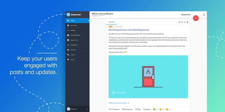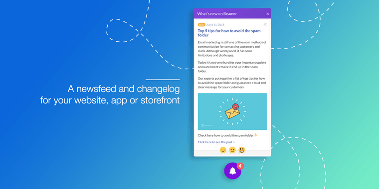 Keep your users in the know with an easy to use notification center and changelog. Announce important news, latest products, special offers and more. -Improve user engagement -Convert more customers -Save time and money