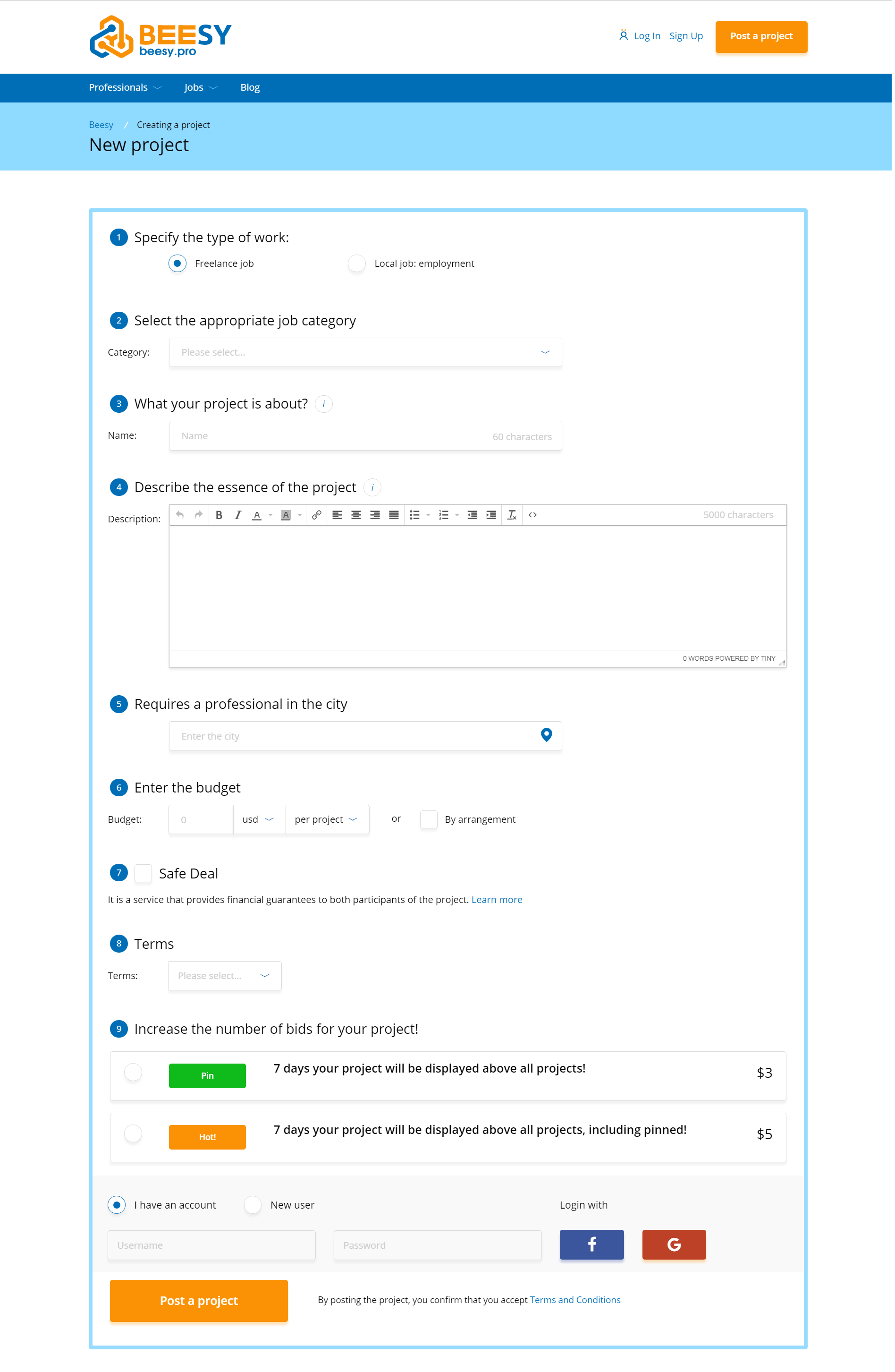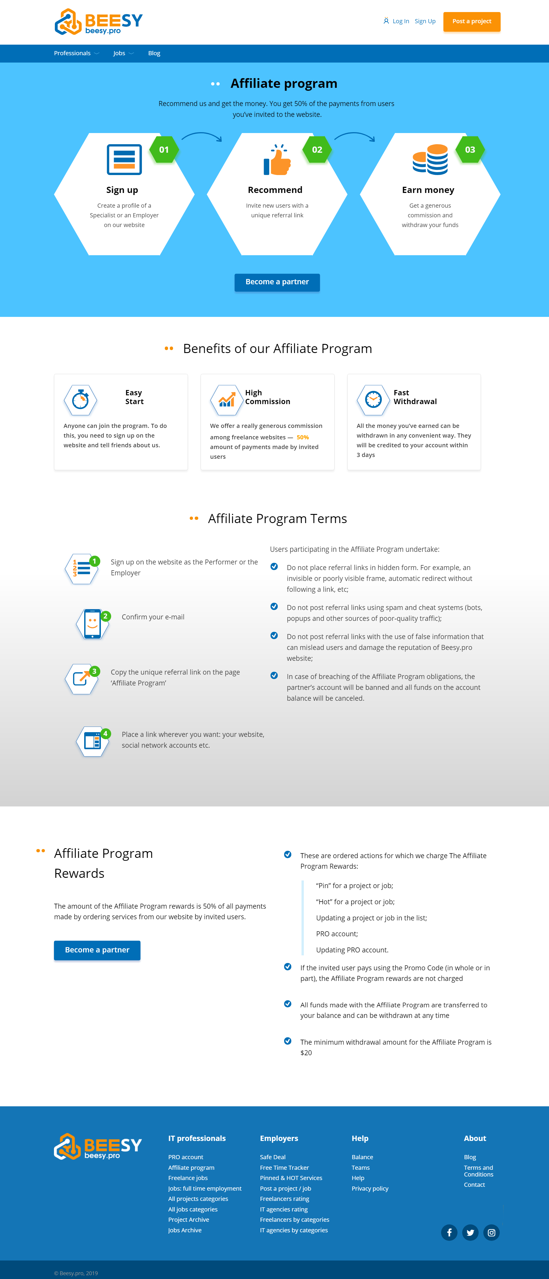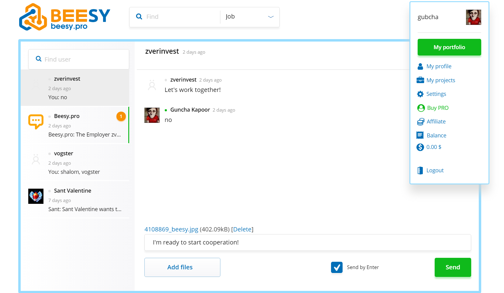 Upwork + Fiverr + Indeed = Beesy.pro Employees can search on Beesy.pro for full-time jobs, remote work and offer own services. Employers don't need to spend time on searching for a performer of work on various websites, Beesy.pro allows to find all kinds of IT professionals for any needs. Beesy.pro was created on the basis of Russian version - Pchel.net that in five months after launch has reached a competitive level and shows a stable growth of registered users.