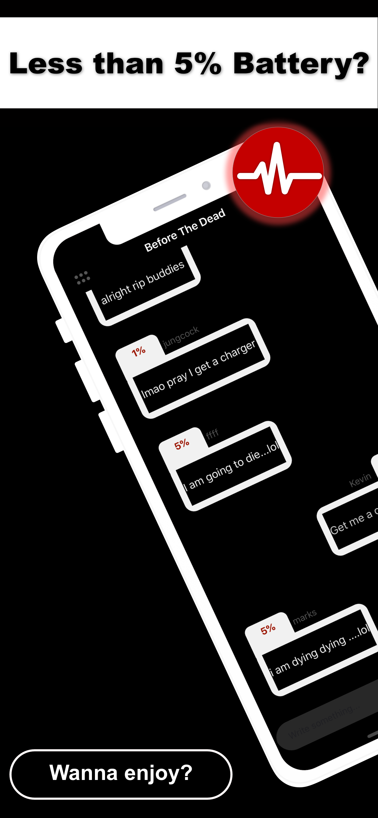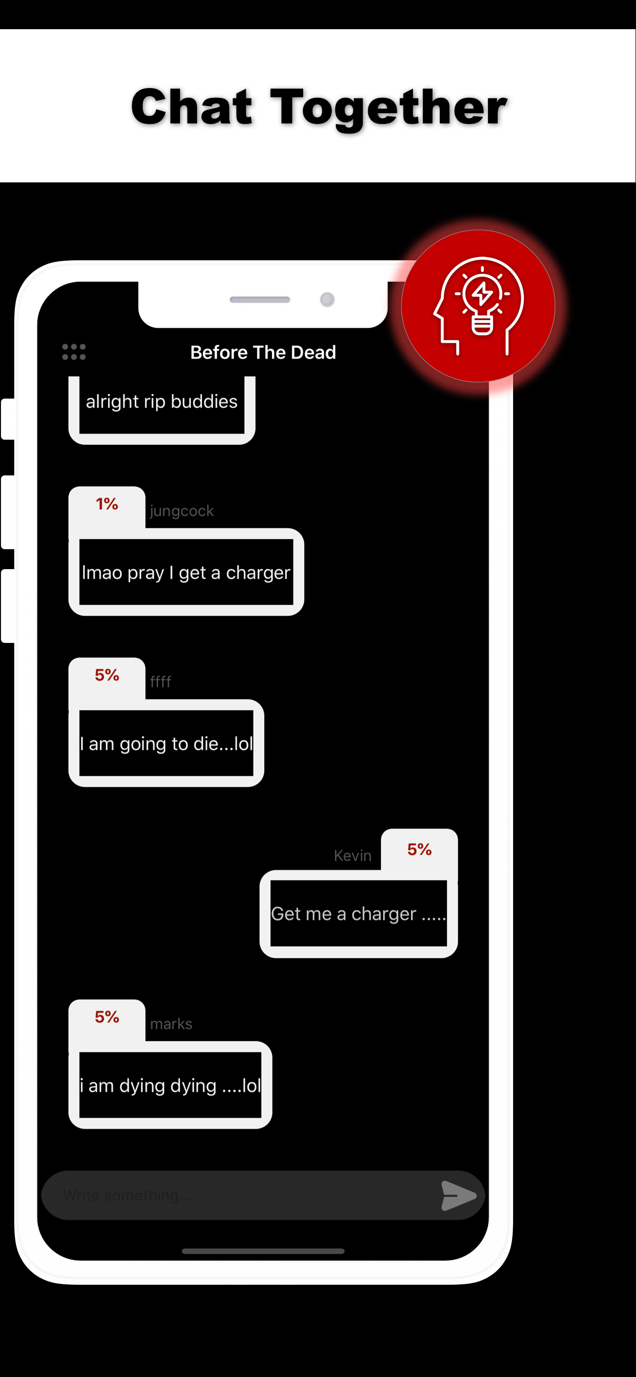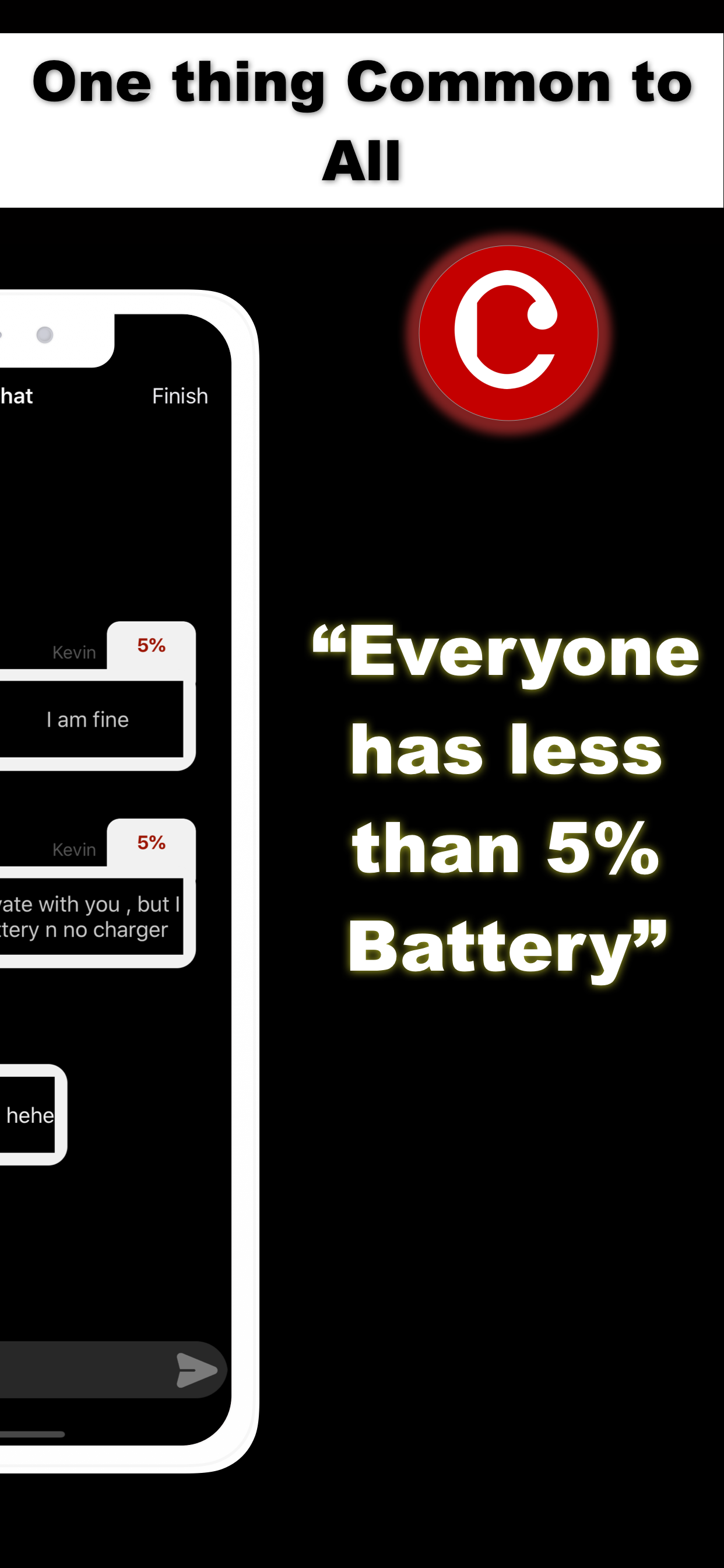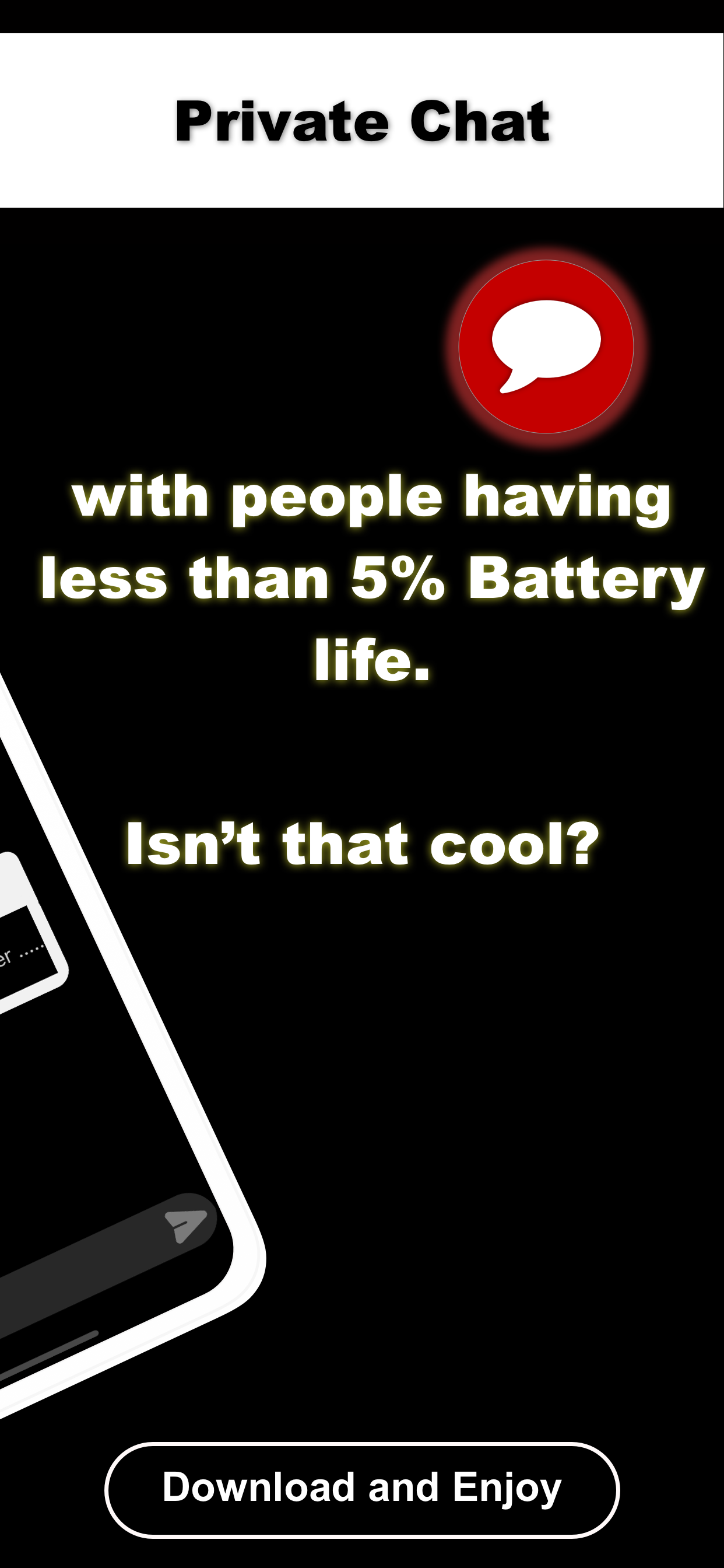 Chat with strangers only if you have less than 5% battery. You can have group chat and private chat..