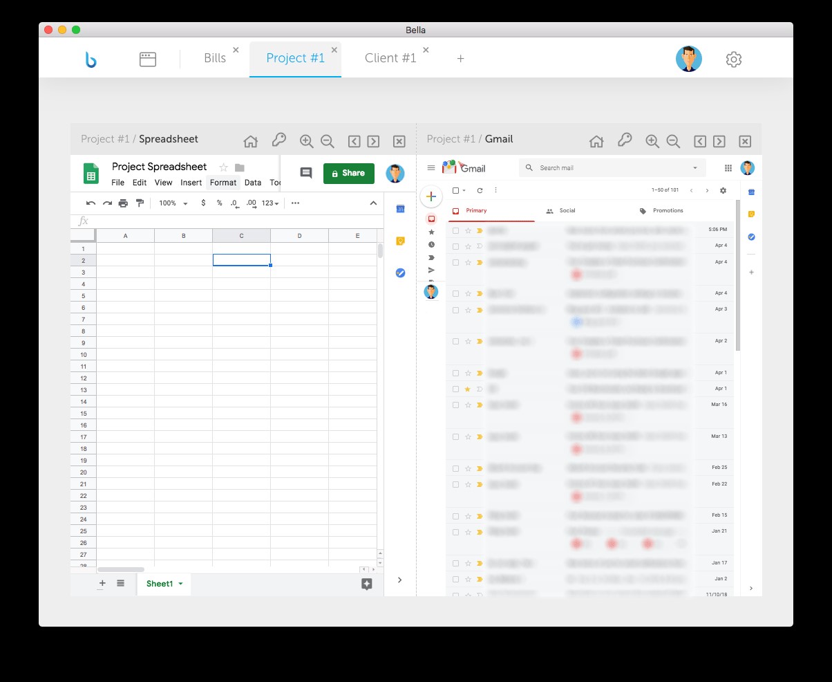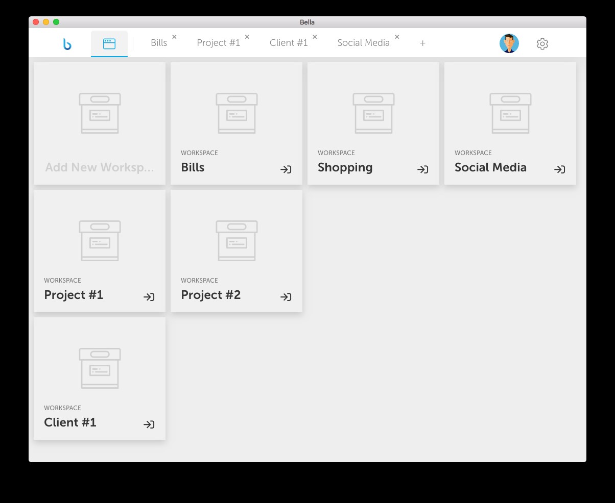 Working online has never been easier. With Bella, endless browsers open is a thing of the past. Bella has a place for everything and everything in its place. Time saving and user-friendly for busy people. Bella simplifies your life by allowing you to create your own organized workspaces that provide instant access to your online accounts, documents, and websites with one click. Save websites, files, and logins pertaining to any subject or project on a workspace and you’ll never need to search again.