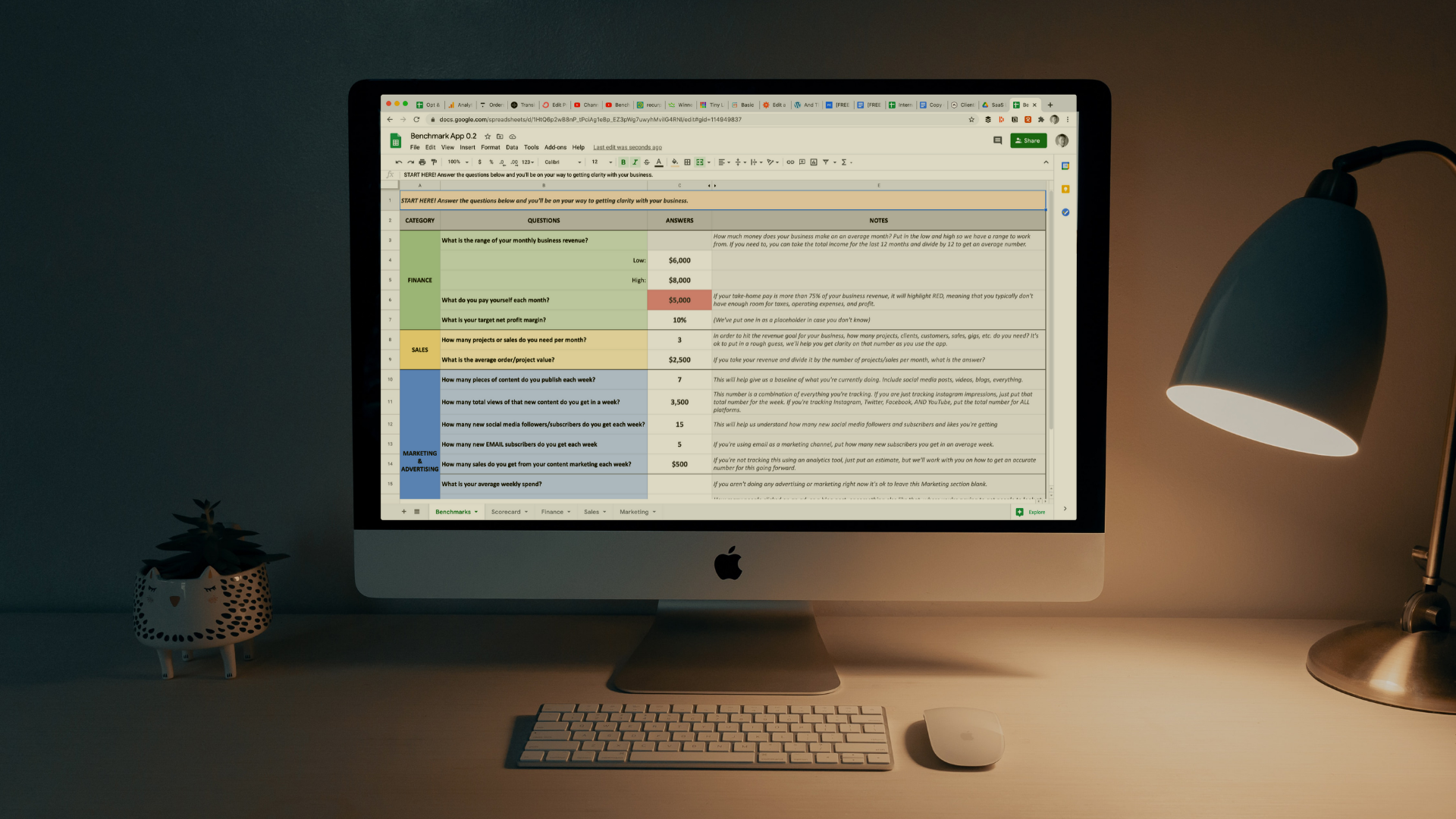 Benchmark was founded in 2020 to help creators and small businesses get control of their businesses by better understanding their numbers. We help you analyze financial, sales, and marketing data and help you identify the areas that need your focus, all in less than 15 minutes. People use the app to get clarity on what's going on with their business and make better decisions on how to fix and grow. The beta version is a free download of a spreadsheet that tracks the most important metrics in each of these areas, and our V1 is coming in spring of 2021. Anyone who downloads the beta will get a 60 day free trial rather than the regular 30.