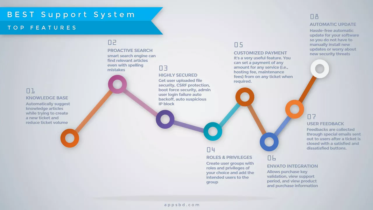 Best Support System, Best by name, best by nature, best by features, it’s is self-hosted support ticket application.It handle support ticket, manage email ticket, collect any payment by PayPal. It has easy installer so you don’t need any programming skill. Also it has lots of features. Click the link to know details https://appsbd.com/product/best-support-system Some feature title are given bellow: Easy Web Installer, Remote Server Login, Web Chat, Knowledge Base, Email to Ticket , User feedback Collection, Proactive Search– smart search engine can find relevant articles even with spelling mistakes, Auto Timezone Control,Highly Secured,Category-wise Custom Fields,Customized Payment ,Envato module integration ,Multiple Text Editors,Customizable Roles and Privileges,Additional Menus ,Easy Customizable Email and Canned Message Template ,Announcements or notifications ,Multiple Theme & Any App Color,Manage File Upload ,Auto Update & etc