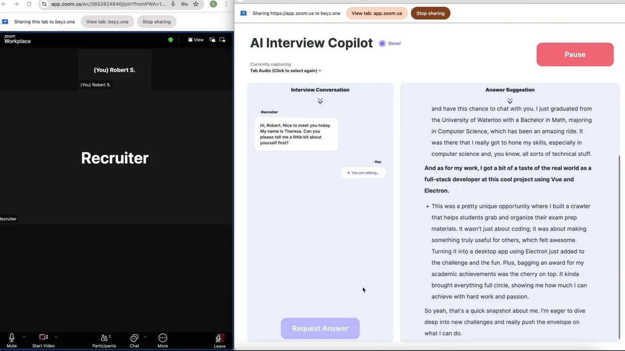 Beyz AI automatically listens and provides real-time answers during your interviews. You can either use it in real-life interviews to instantly boost your performance or practice by yourself to quickly learn the right answers for all types of interview questions.