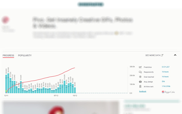 Get Useful insights about Kickstarter Campaigns A campaign tracker for Kickstarter. The most comprehensive data tool for Kickstarter - right in your browser. Analyze funding, backers and popularity over time. See how today's funding compares to other days with the pace indicator. monitor creator responsiveness, get a smart algorithmic prediction, and more.