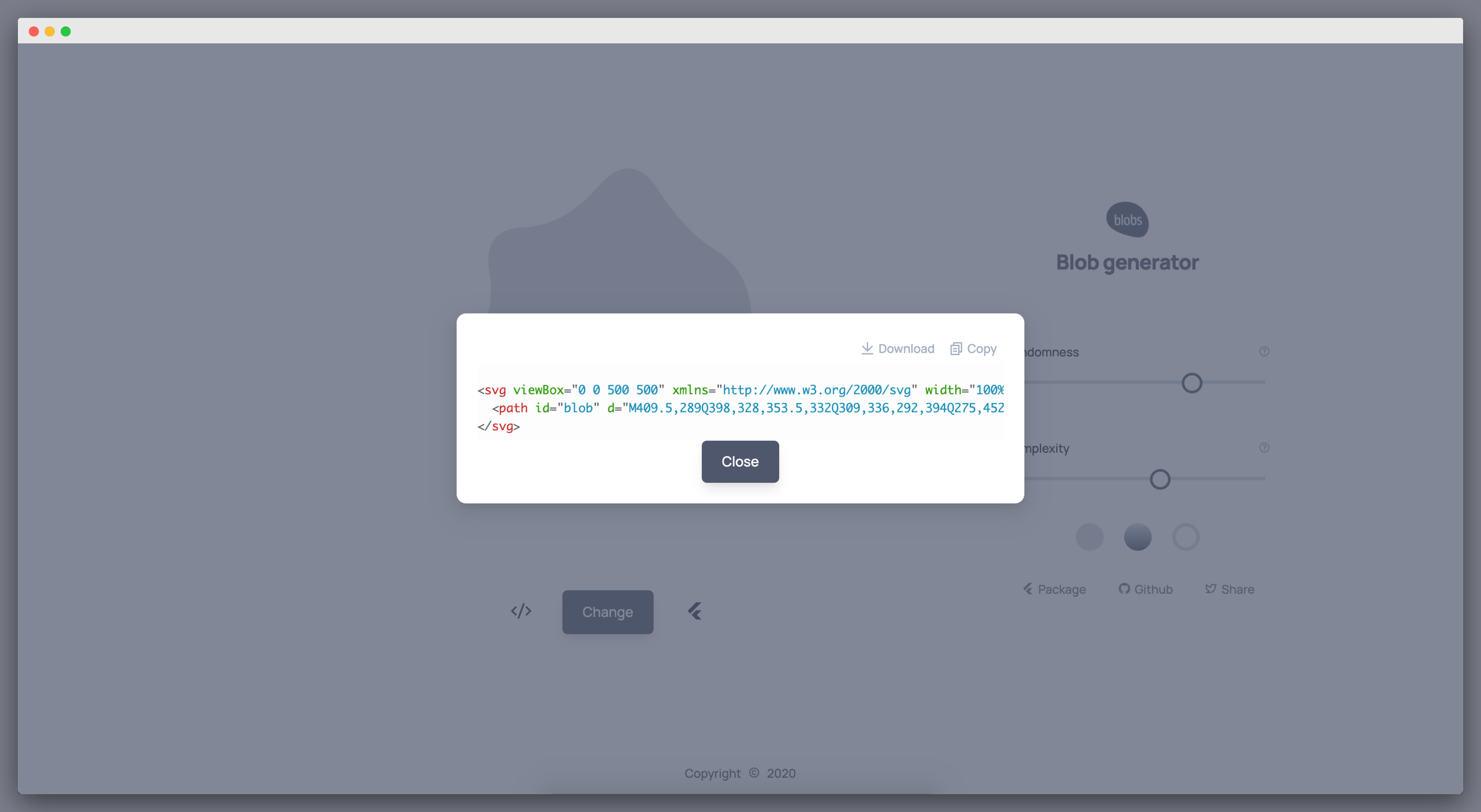 Generate customisable random blob shapes and export as SVG for web apps and use the same shape in flutter apps
