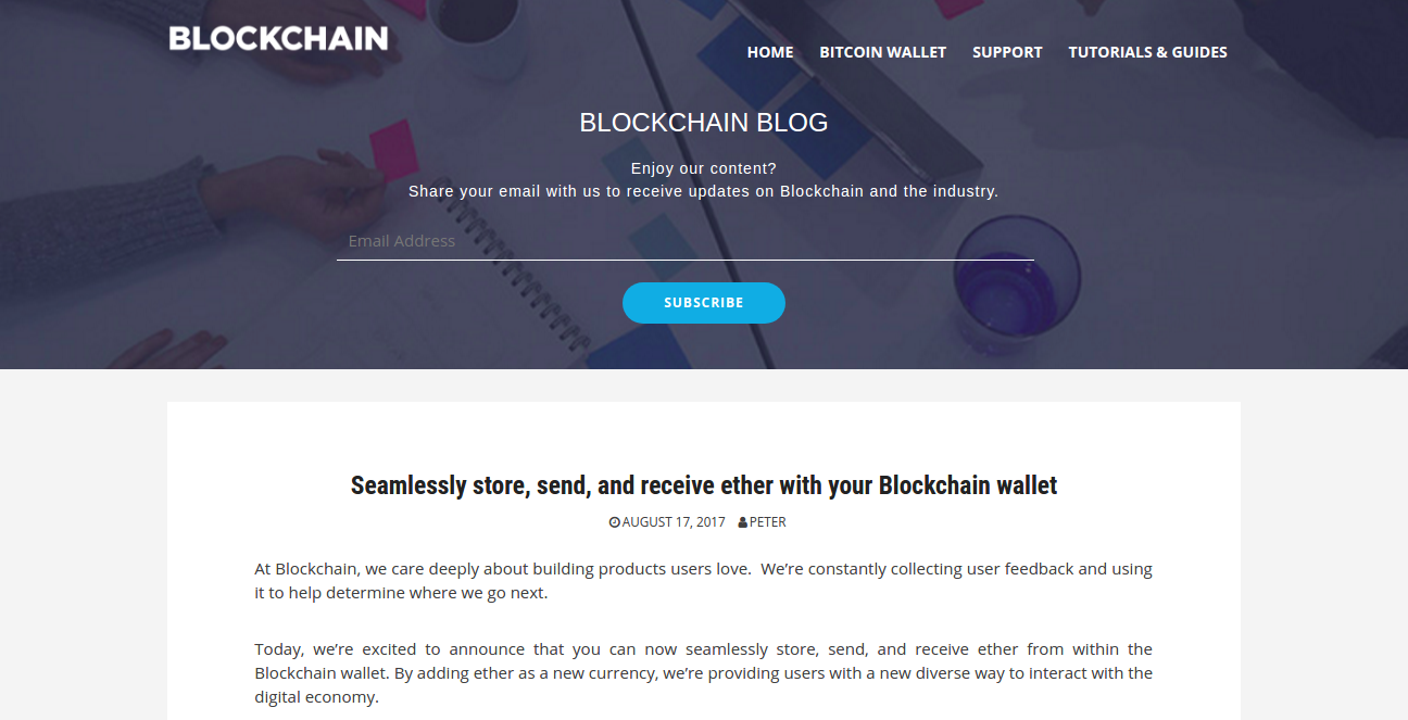 Seamlessly store, send, and receive ether with your Blockchain wallet