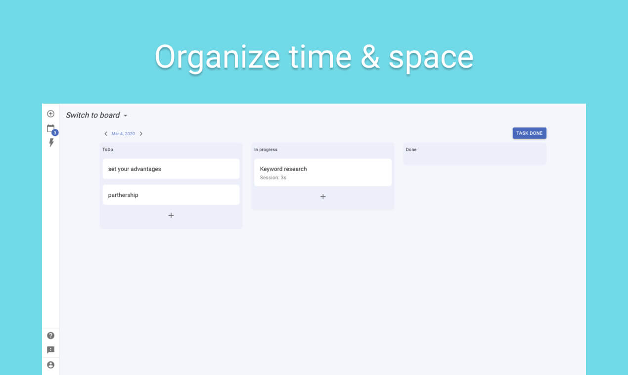 Every one of us is nearly lost in the digital world of information – everyday we get more and more data that is stored on different resources and it is becoming extremely inconvenient and inefficient to search for it every time it is needed. Nevertheless, it seems that, for now, there are solutions to this problem for business needs mostly. Boardist is a universal tool to store and organize ideas, materials, tasks or even bookmarks designed for personal needs. It is an easy-to use workspace where it is convenient to collect and structure all the data on multiple boards, usually organised by topics. Simple UI of the software mis empowered with shortcuts and navigation tools. The main ideas that lie behind the product: - Time, space & data management - Easy to use and navigate - Flawless for personal needs - Secure & privacy-oriented For sure, there are tons of additional features baked in Boardist: - Customization of the items across the boards; - Collaboration with other users - Kanban planner and productivity reports - Pomodoro timer - Chrome extension to sync bookmarks - Import from Trello and Todoist Hope you will enjoy using it!