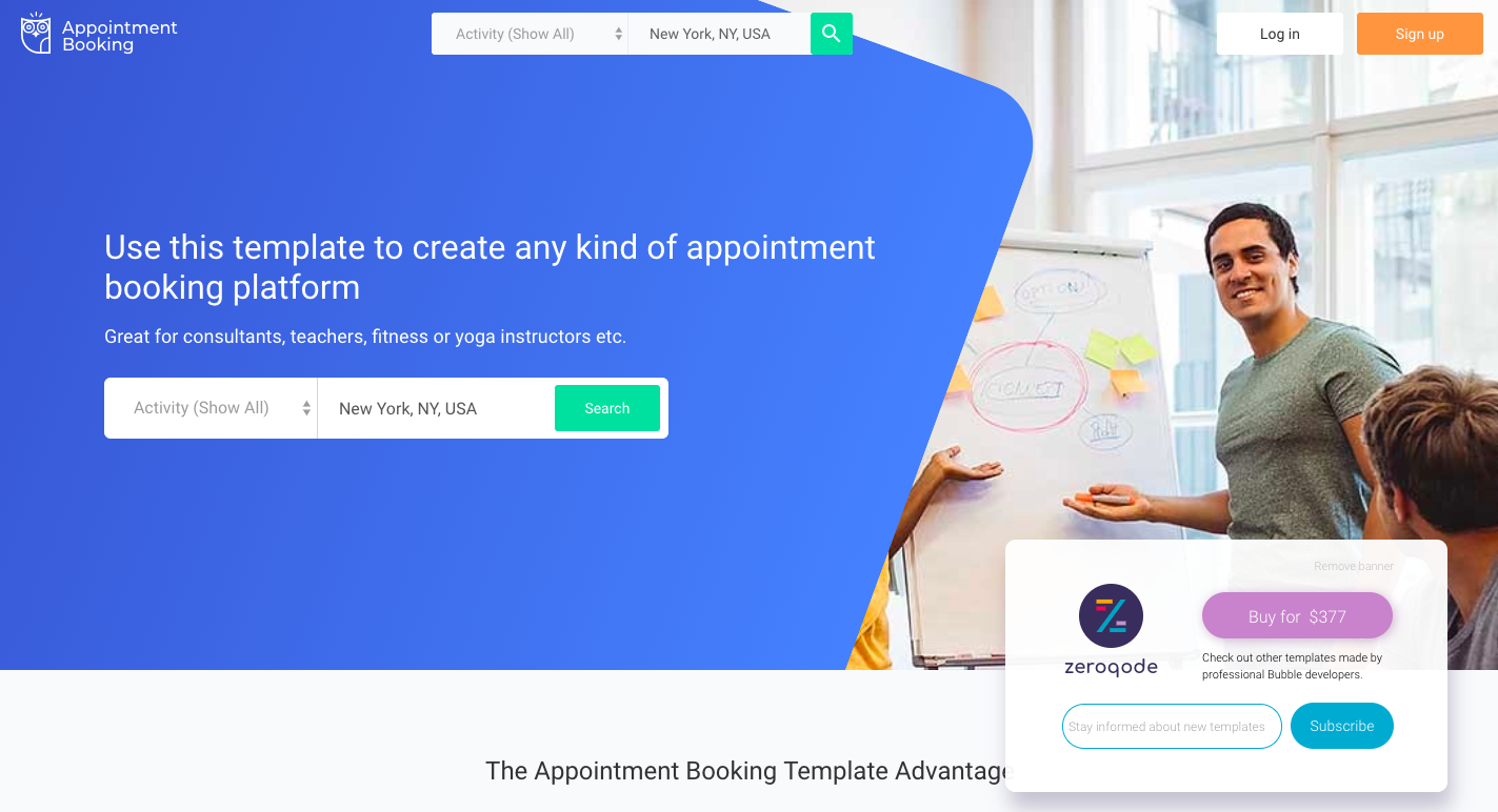 Booking and Appointment Template is an industry oriented solution. It was created for anyone who needs to build a platform bringing users and different service providers together (e.g. consultants, teachers, fitness instructors, handymen, etc.). It features responsive design, messaging, payments and refunds, cancellation policies and much more. The Appointment Booking template offers: - Time savings leveraging an automated booking system - Clarity by organizing all your reservations in one place - Access to new customers, service providers, and advertising opportunities