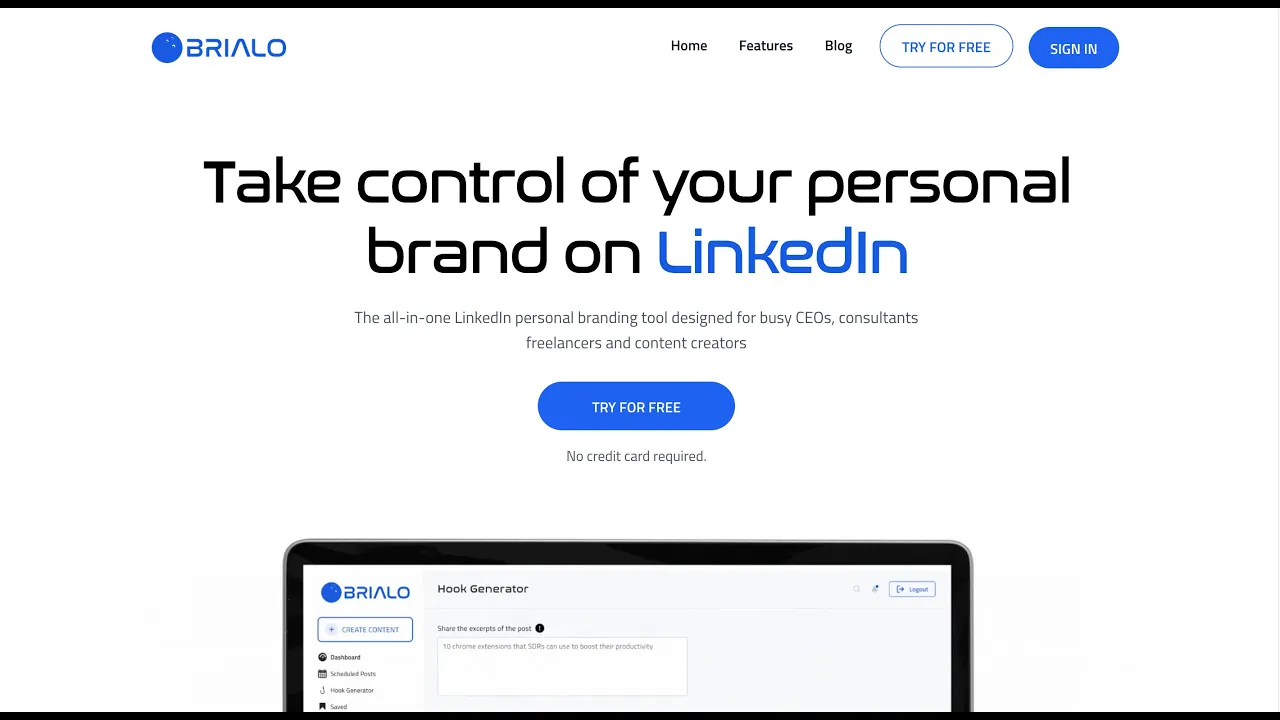BRIALO is an AI-powered software-as-a-service (SaaS) platform to help LinkedIn users enhance their personal branding and grow their professional network. With BRIALO, users can create LinkedIn-friendly content, schedule and publish posts, generate content ideas, and even engage with their favourite creators in one user-friendly platform. BRIALO is ideal for professionals, content creators, entrepreneurs, freelancers, sales and business development professionals, marketing experts, and consultants across various industries looking to establish thought leadership, grow their audience, and generate leads on LinkedIn. Getting started with BRIALO is easy! Sign up for our 7-day free trial, which includes 10,000 free words for content generation. After the trial period, you can choose from our various pricing plans to continue enjoying BRIALO's features.