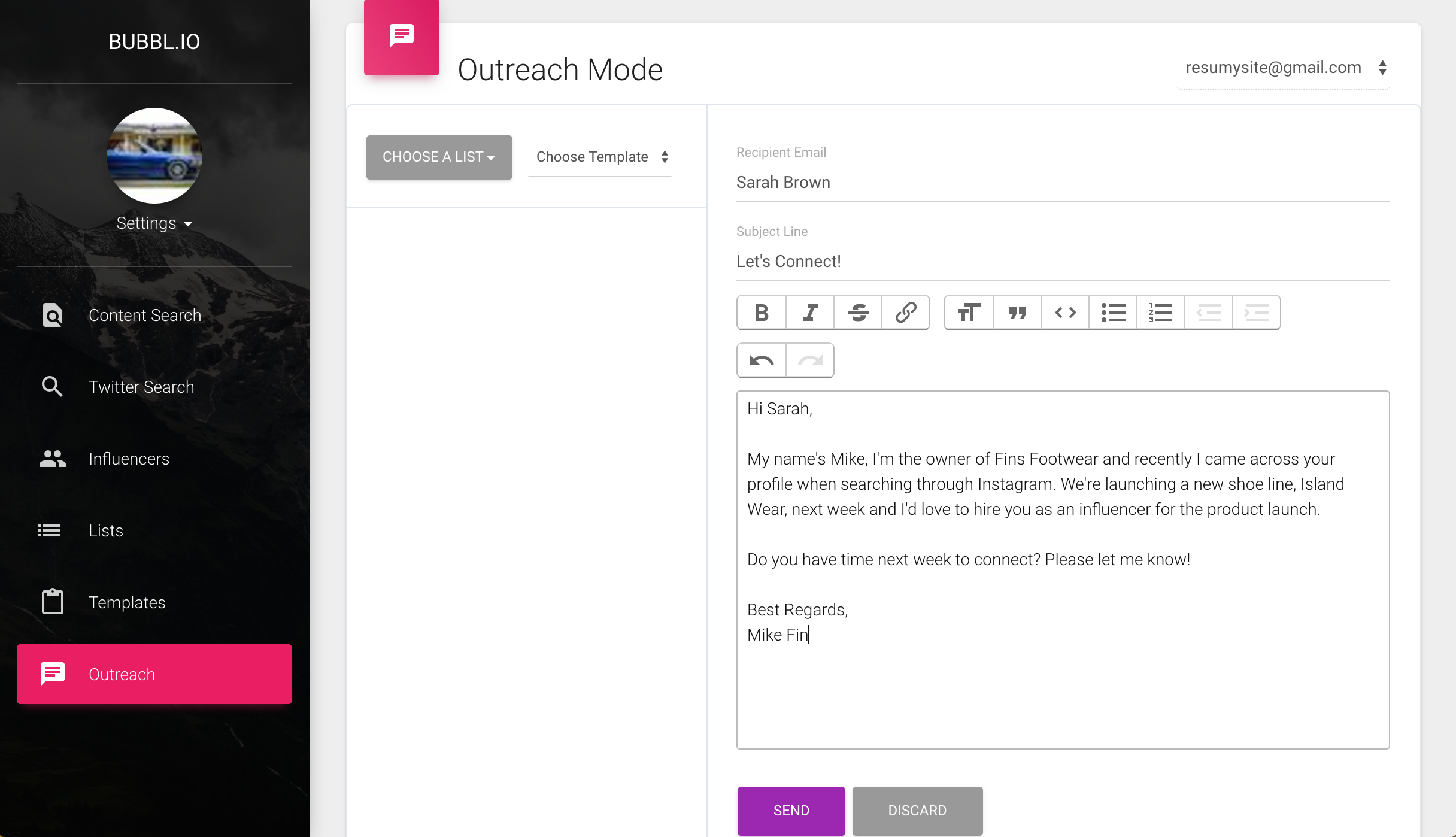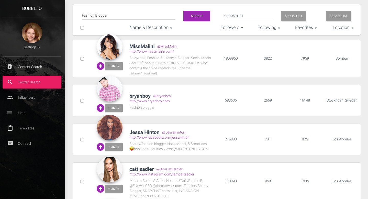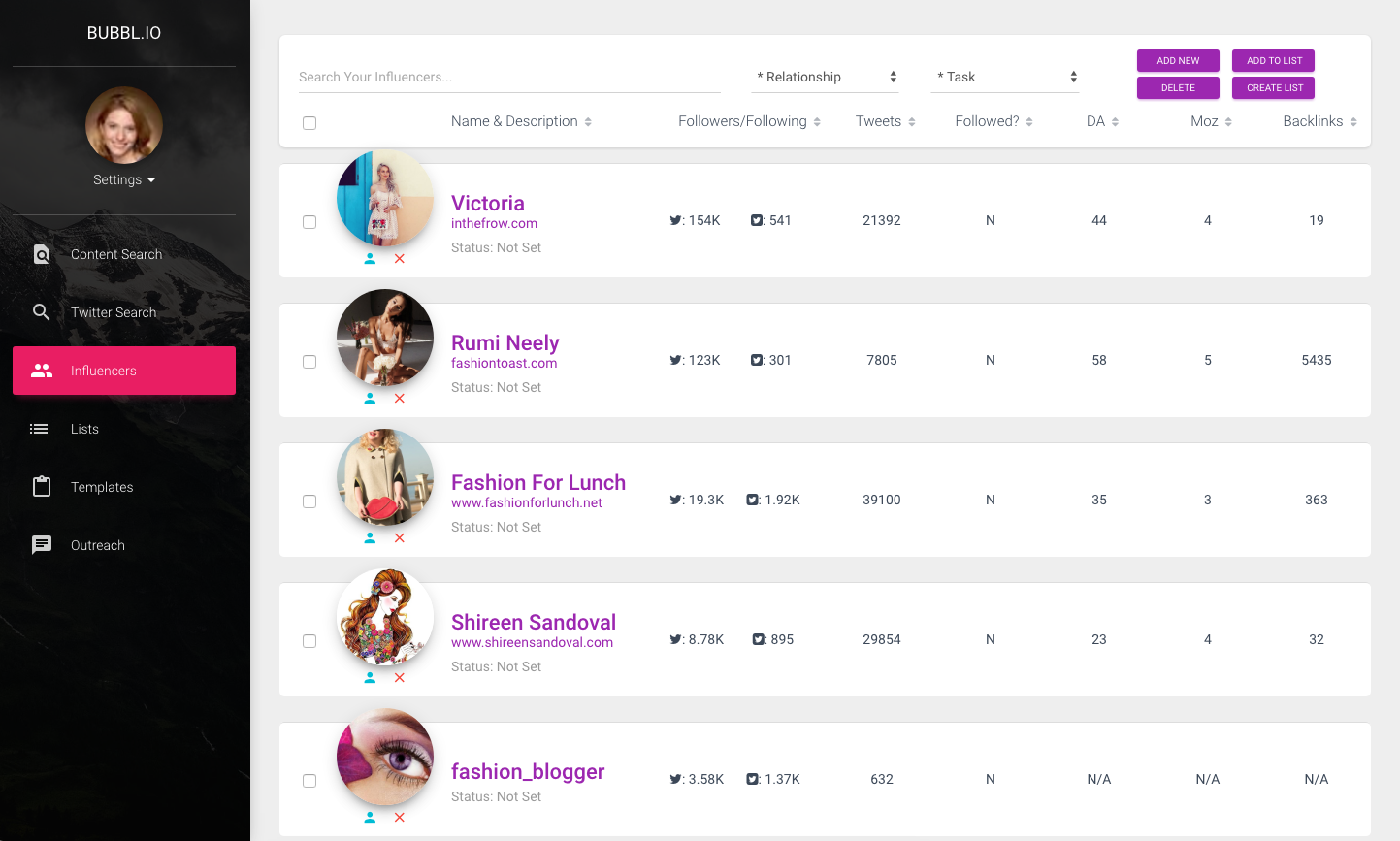Bubbl.io is a US based startup which recently released its MVP. Bubbl is focused on providing startups and bloggers alike with a cost efficient influencer marketing platform. Bubbl's platform allows its users to find, organize, manage and communicate with influencers. Claim your free trial today by visiting https://www.bubbl.io!