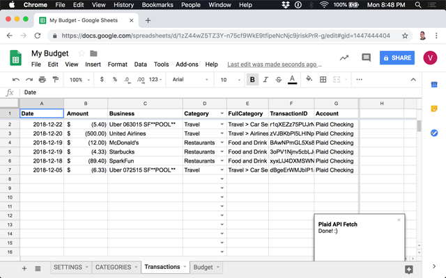 Take full control of your own budgeting! BudgetSheet is a Google Sheets Add-on that allows you to link your bank accounts and import live bank transactions directly into your own spreadsheet.
