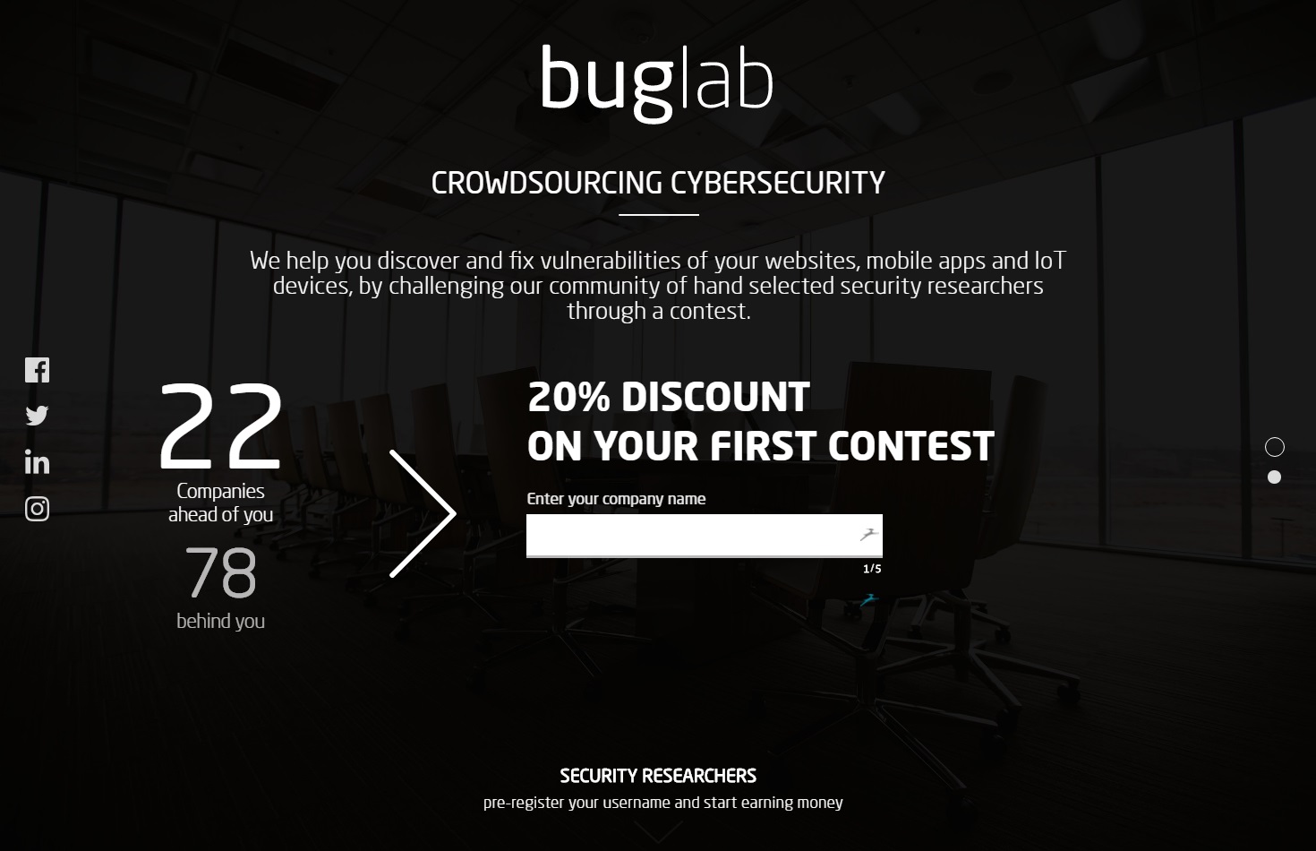 We help you discover and fix vulnerabilities of your websites, mobile apps and IoT devices, by challenging our community of hand selected security researchers through a contest. Pre-registering will make you eligible to a 20% discount on your first contest Follow us and share your referral link to get an additional 10% discount on your future security contests for every company you refer once they order a security contest.