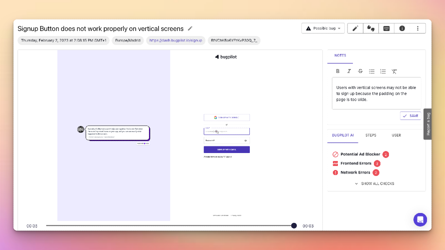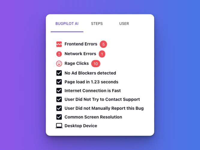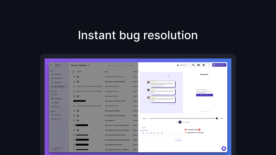 Bugpilot's AI-powered bug resolution platform helps SaaS teams understand, prioritize, and fix user-facing bugs in seconds without asking a single question. With Bugpilot, SaaS teams can: - Uncover hidden bugs your users are not reporting - Give power-users tools to report actionable bugs in seconds - Fix user-facing issues in seconds, with AI-assisted prioritization and resolution