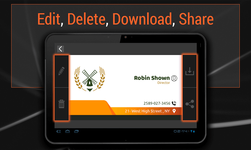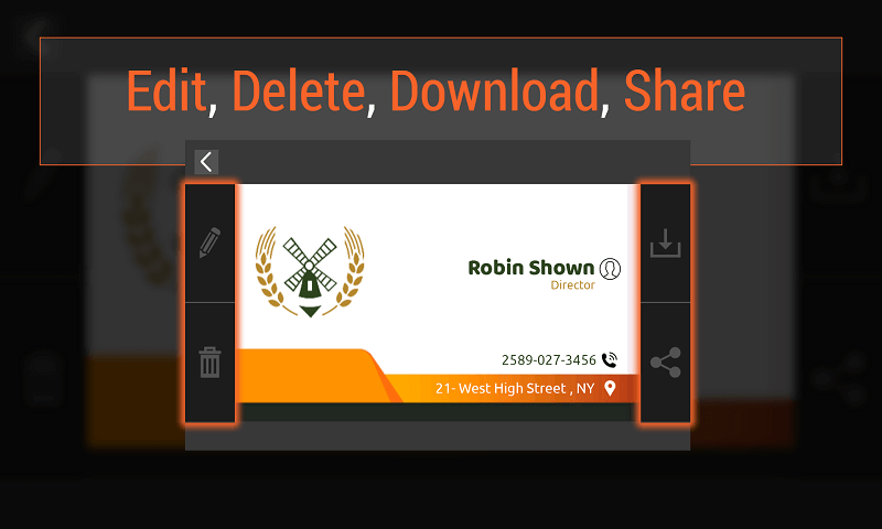 Business Card Maker App let you create your own proffesional visiting card withinn 5 minutes and save your time. Design your own card as creative as you can do. This app is absolutely free to use. Features of the app - 400+ business card templates - 20+ different categories - Advance powerful edit tool - see sample image for your reference. - 200+ icon and logos - rotate, delete, edit, fonts. change font color, font type, alignment, mange space between words, change opacity. - can edit in grid view. - you can import your own logo or use logo from library - Change color of logo, rotate, delete , sharp touch option to move single pixel. - Change opacity of all objects. - Save your created card for later edit - Share card via email and social sharing sites. - Download card ad image and save to gallery or Download as PDF