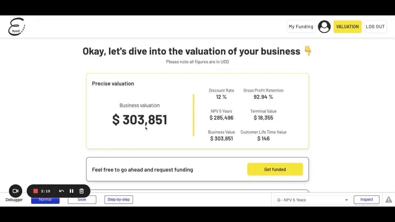 Having an idea of how much your Shopify App business is worth is a powerful knowledge — you know that — but where do you start with this process? Many Shopify Developers are curious about the value of what they've built or are still building but there wasn't really a reliable source to inform them. The best guesstimate would be some sort of an ARR multiple which is really a very crude metric. Often valuation multiples appearing in blog posts and tweets are masking the reality as the true source of information is only available to a buyer and a seller striking a deal. You rarely get to know what was the actual split of upfront cash and earn-outs etc. Whilst our main focus is the provision of financing for Shopify App developers, we end up being involved in a large number of acquisitions either via funding or by simply helping our clients and partners to get the best possible outcome in the transaction. It was natural for us to start using our analytical algorithms for the purposes of valuing Shopify App business of various sizes and complexities. We spent many hours building and perfecting our spreadsheet models until we got to the point of having a fairly universal yet accurate data-driven solution. The rest was history as we’ve built a separate function within our App to derive a discounted cash flow-based valuation augmented by relevant comparables of contracted acquisitions. Our valuation tool is an easy-to-use online App that provides both instant valuation of your business and also a precise one with the key metrics underpinning it. Seeing a range of value of your business is a great starting point to inform your decisions but don't stop there - wait for an e-mail notification and see the precise valuation of your business. And don't worry about the complexity of the process — we take care of everything in the background and give you the summary of the key drivers behind our valuation method. You'll know enough to have an informed conversation with a potential buyer or an investor and if there are any questions left, simply give us a shout at [email protected]. Our valuation tool has been trained on a decent-size data-set to provide a solid baseline valuation driven by the cash flow that your business generates. More importantly, there is a group of experts assisting our programmatic approach. There's no faster way to get your business valuation ready. Ready to dive in? Go ahead and try our free valuation tool now.