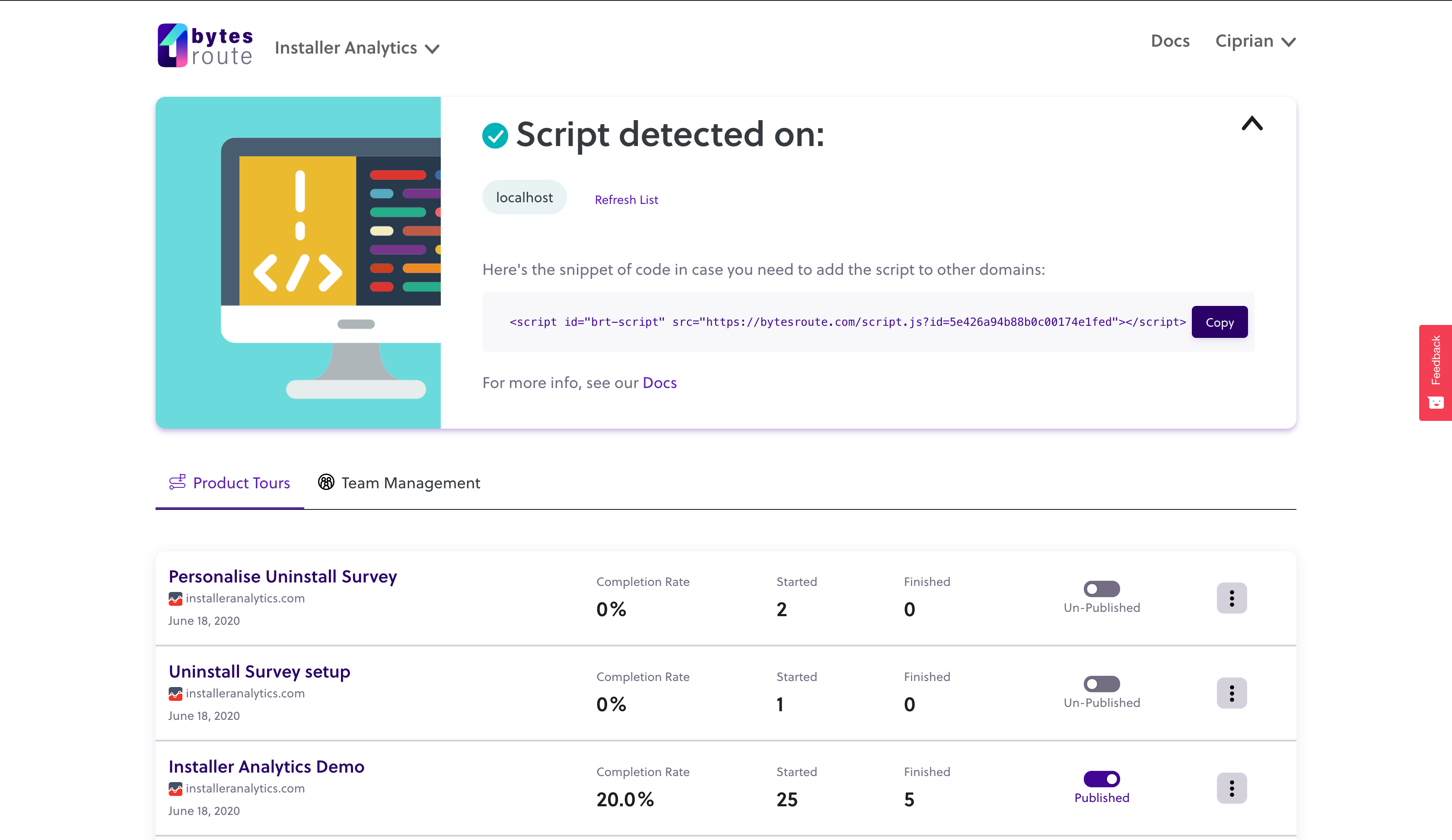 Bytes Route helps SAAS products ease the platform adoption through code-free product tours. These tours translate into users' better grasp of the product's features and easing all teams' workload. Besides the user's onboarding, a single product tour can unlock all your teams. Customer support can focus on more significant issues, development on new features, and marketing on efficiently promoting what's new on your platform—still code free. Oh, and not to forget, Product Managers can now manage the team by adding or removing members of any roles. The more, the merrier!