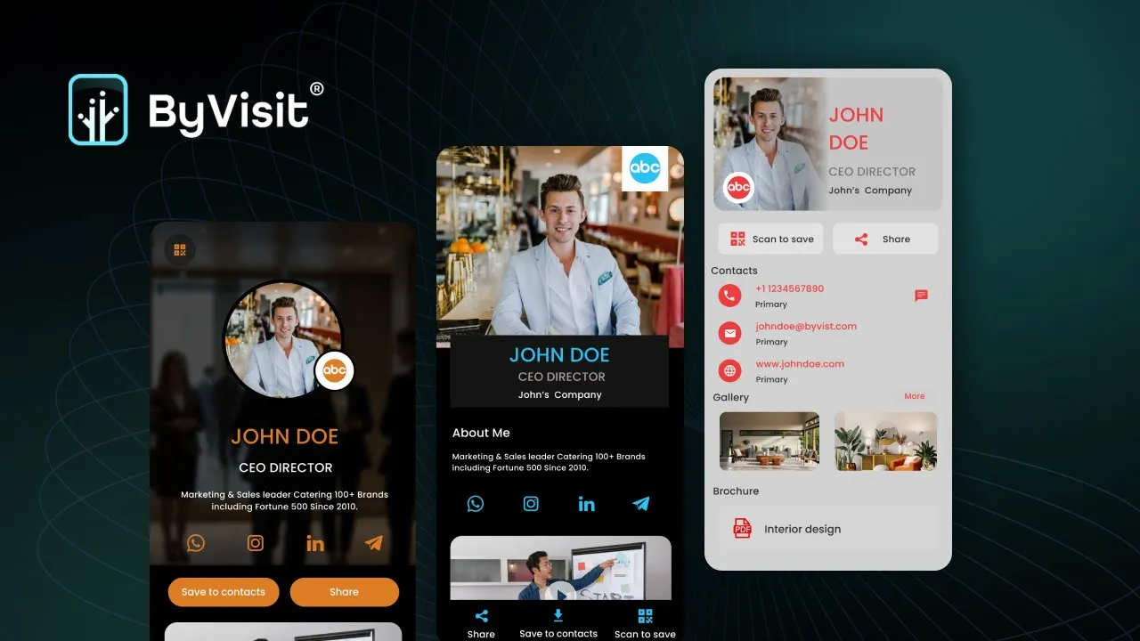 ByVisit app helps to save paper and ink to create visiting card digitally and ultimately helps environment. Keep up your networking with the new revolution in business networking. 1. Secure your card with help of 6 digit pin and share privately with temporary one time link directly from this app. 2. All the saved data on this card are actionable on single tap for example dial, email, sms, location, social media and updating day to day for ease of use. 3. Save more organization details with organization name, logo and description. 4. Add phone numbers, websites, emails and contacts. 5. Auto generates QR Code with vcf format to scan and save directly to your phonebook. 6. Your networking people can download contact card as VCF and can save directly to their contact list without this app in their mobile directly from browser. 7. Eliminating hard copy card problems and go with online business card. Sample card https://byvisit.com/byvisit