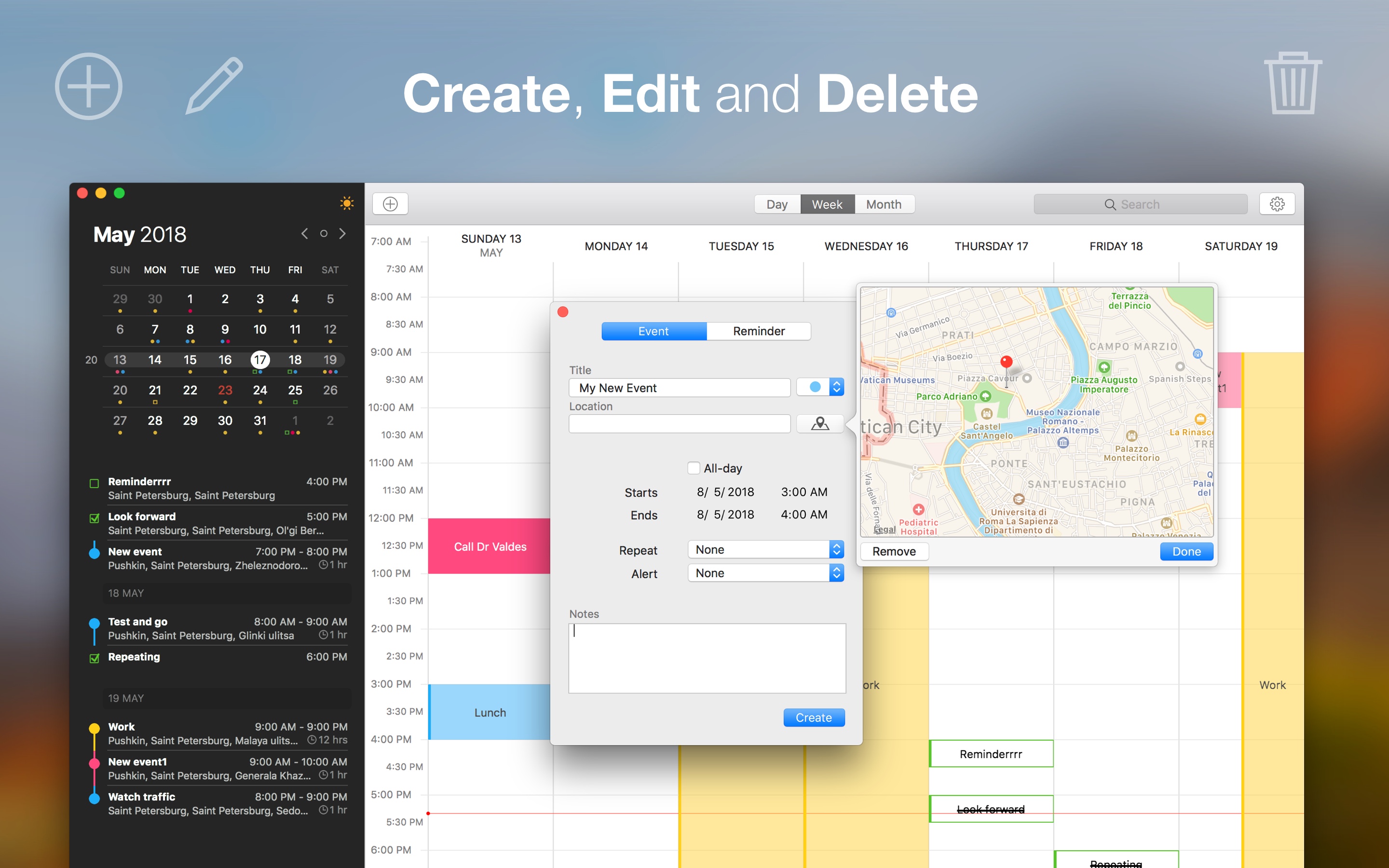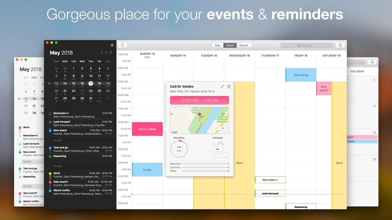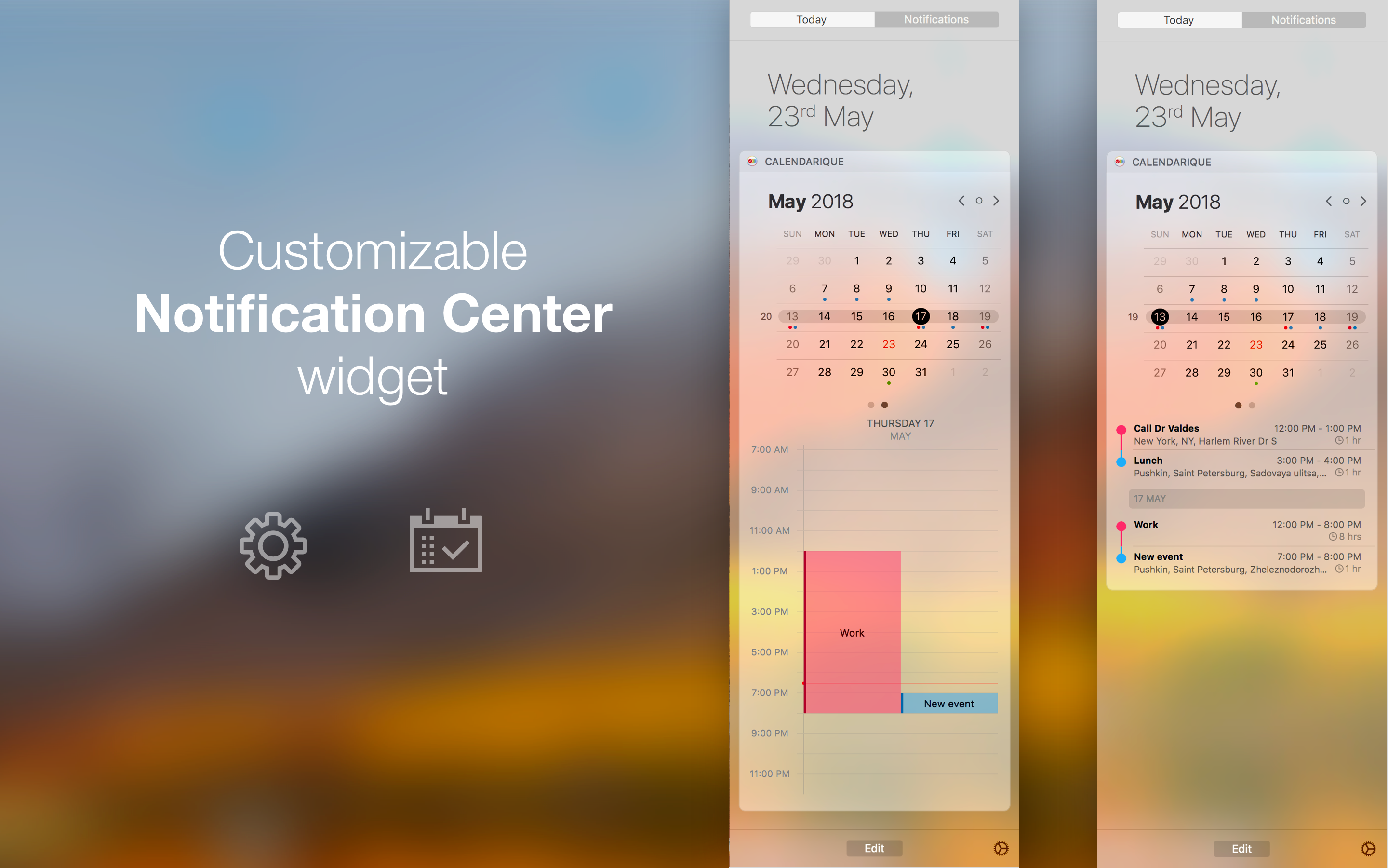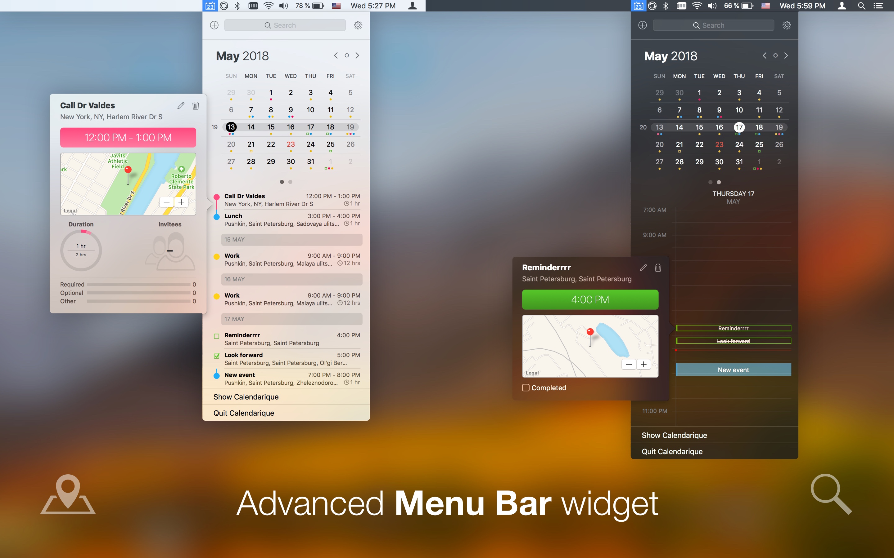 Calendarique features unified view showing both calendar events and reminders. Shows event's locations, notes and statistics. Offers complete events and reminders management. Simply slide out notification center or access Calendarique from Menu Bar to get an overview of any month. Colored marks for each category of events and reminders are right there in the monthly view. No need to select specific date to see whether business or family events are scheduled or if it's just a holiday reminder! Calendarique lets you quickly toggle multiple calendars and reminders on or off. Monthly calendar widget can be placed in macOS Status Benu or added to Notification Center. Features: - Create, Edit, Delete events and reminders - Desktop app, Menu Bar and Notification Center Widgets - Light and Dark themes - Events and reminders Search - Location Support - Day/Week/Month Overview - Events Timeline - Integrated Search