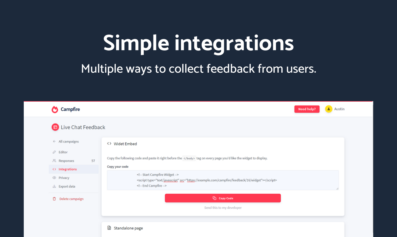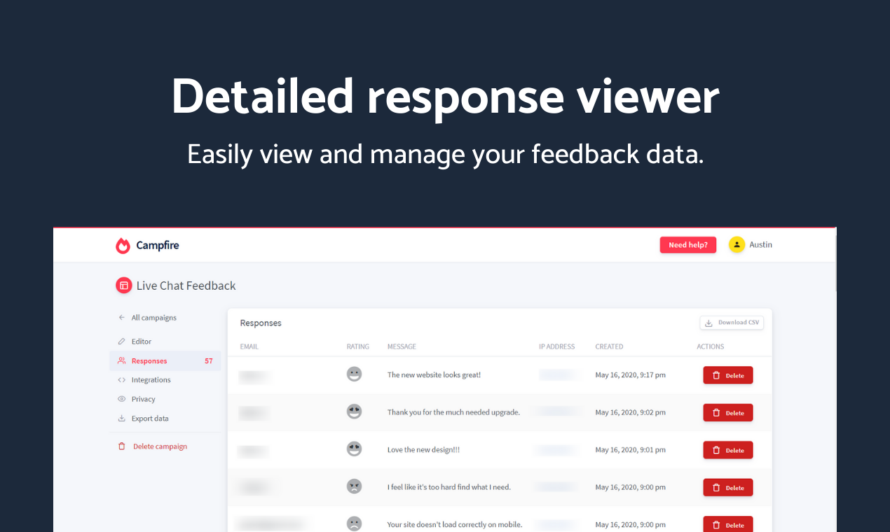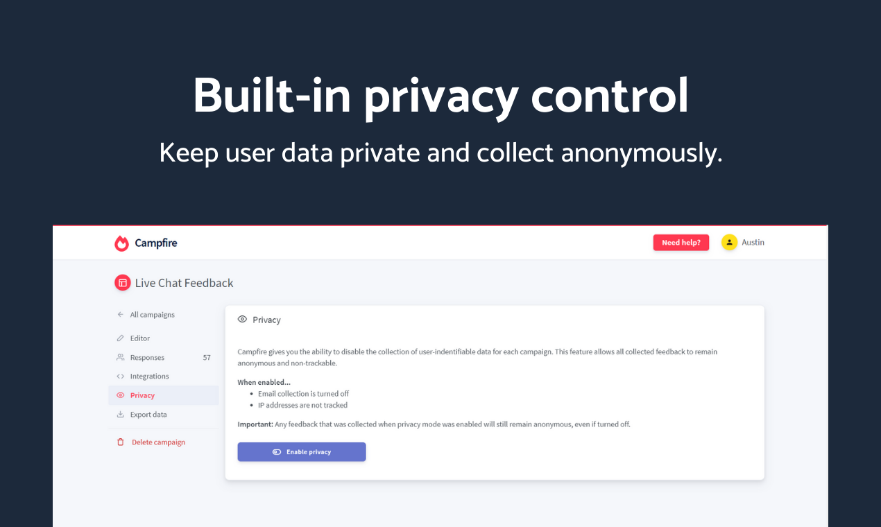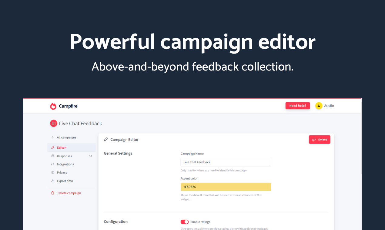 I've always struggled to find a good website feedback tool that let me collect user feedback efficiently and without a hassle. Instead of searching for such a product that doesn't exist, I decided to build it myself. Introducing Campfire, an easy and simple platform for collecting feedback. I wanted a platform that would give me a good range of customization and a simple, no-fuss view at responses I've received. I brought those concepts together with this project. Campfire is extremely versatile and works well with any website, on any device. In just a few seconds, you can start collecting feedback from either the JS widget or a standalone page. You're also able to export responses to an CSV file, which I myself find helpful. I know data collection has been controversial at times, which is why I built Privacy Mode into the product. By enabling one switch, data collection is turned off and all feedback collected remains completely anonymous. Paying for a good tool can get expensive, which is why I've decided to sell Campfire as a host-it-yourself product over on CodeCanyon. This eliminates the cost that you'd be spending on a monthly plan, and you'll have access to updates for life. You can learn more about Campfire and check out the live demo I have set up below. https://hexagonal.agency/campfire/ I'd love to hear your feedback and suggestions, so please leave them in the comments! Thank you for your support.