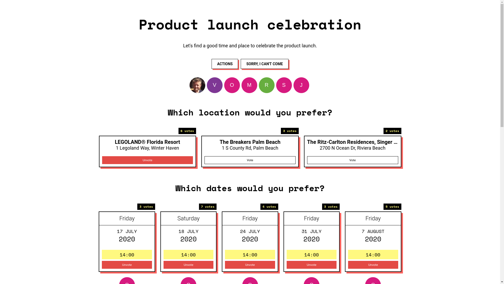 Find the best time and place to meet. Invite your friends or similar to join your event and vote for the best date and place.