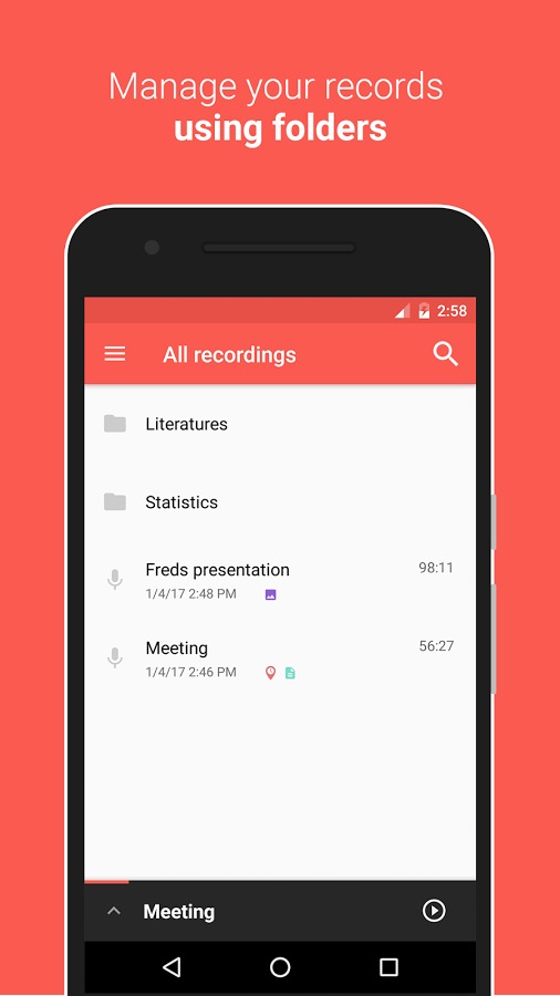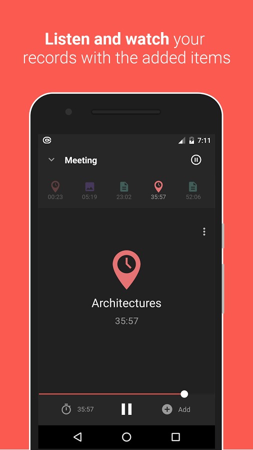 Canomapp is a sleek, beautiful, clean and intuitive voice recorder app with 3 key additional features that will make it your new favorite productivity tool. It enables you to add photos, notes and markers to any recording. . Additionally, you can easily create folders and store your recordings to better organize your personal, college or business life. Ideal for recording ideas, lectures, meetings, plans and much more.
