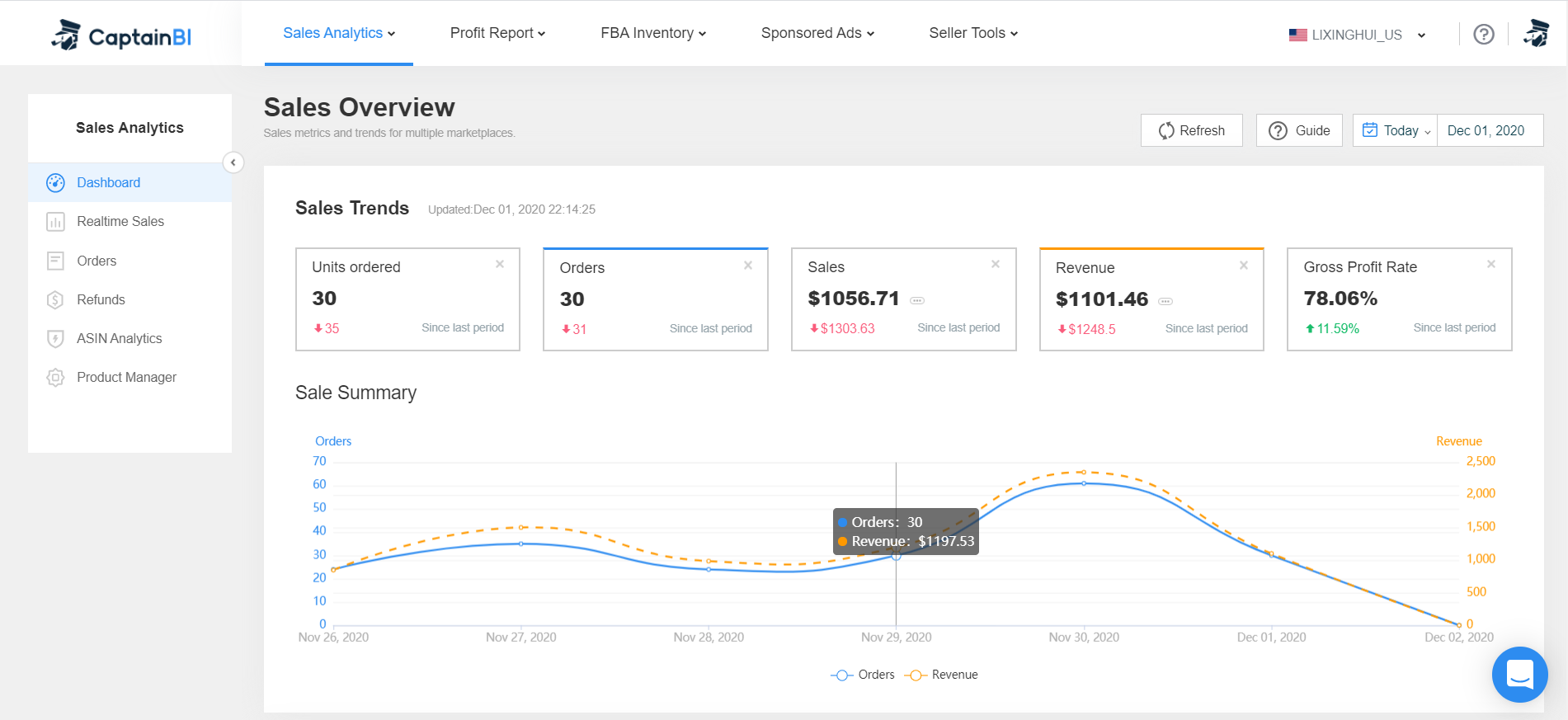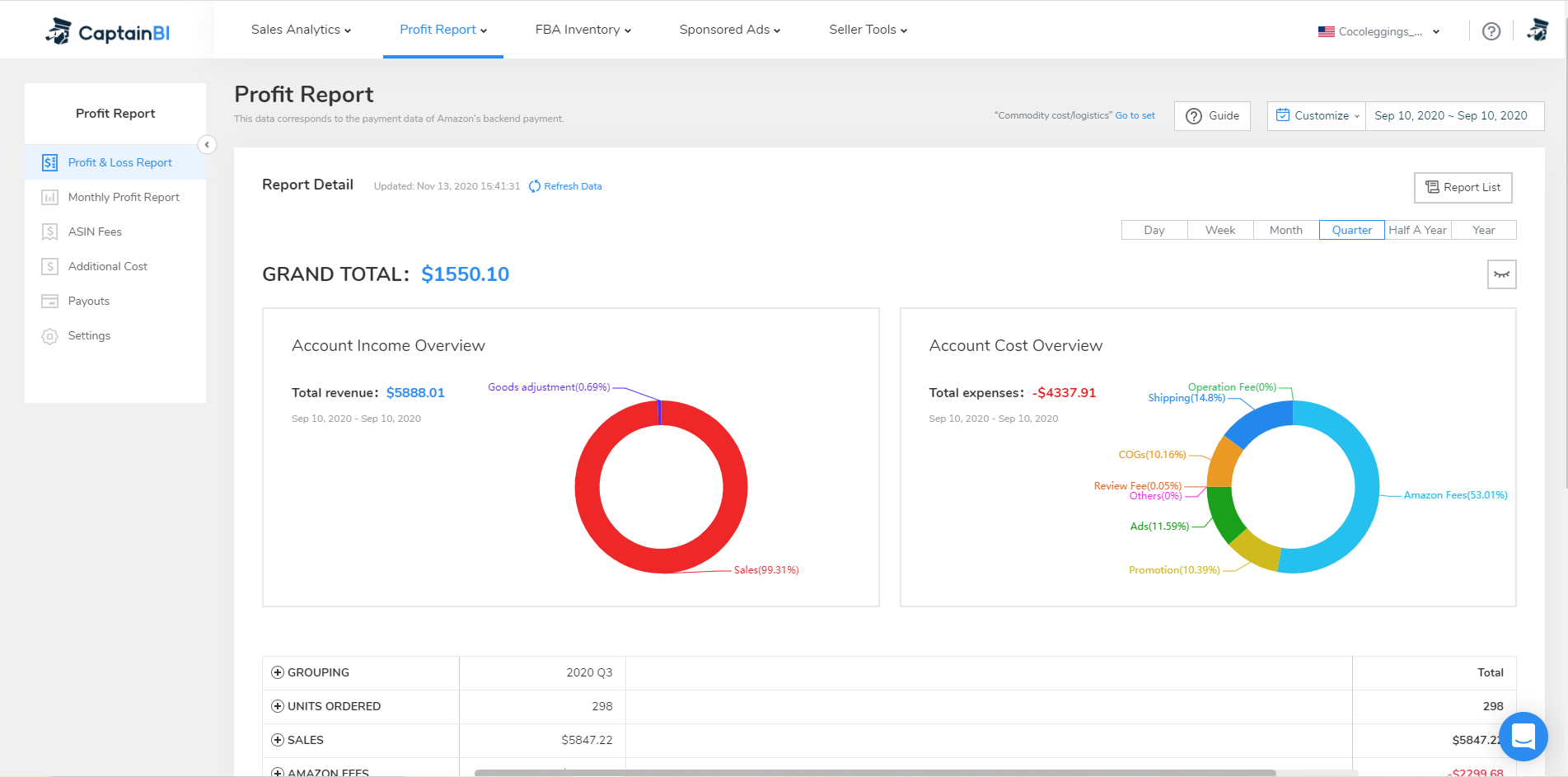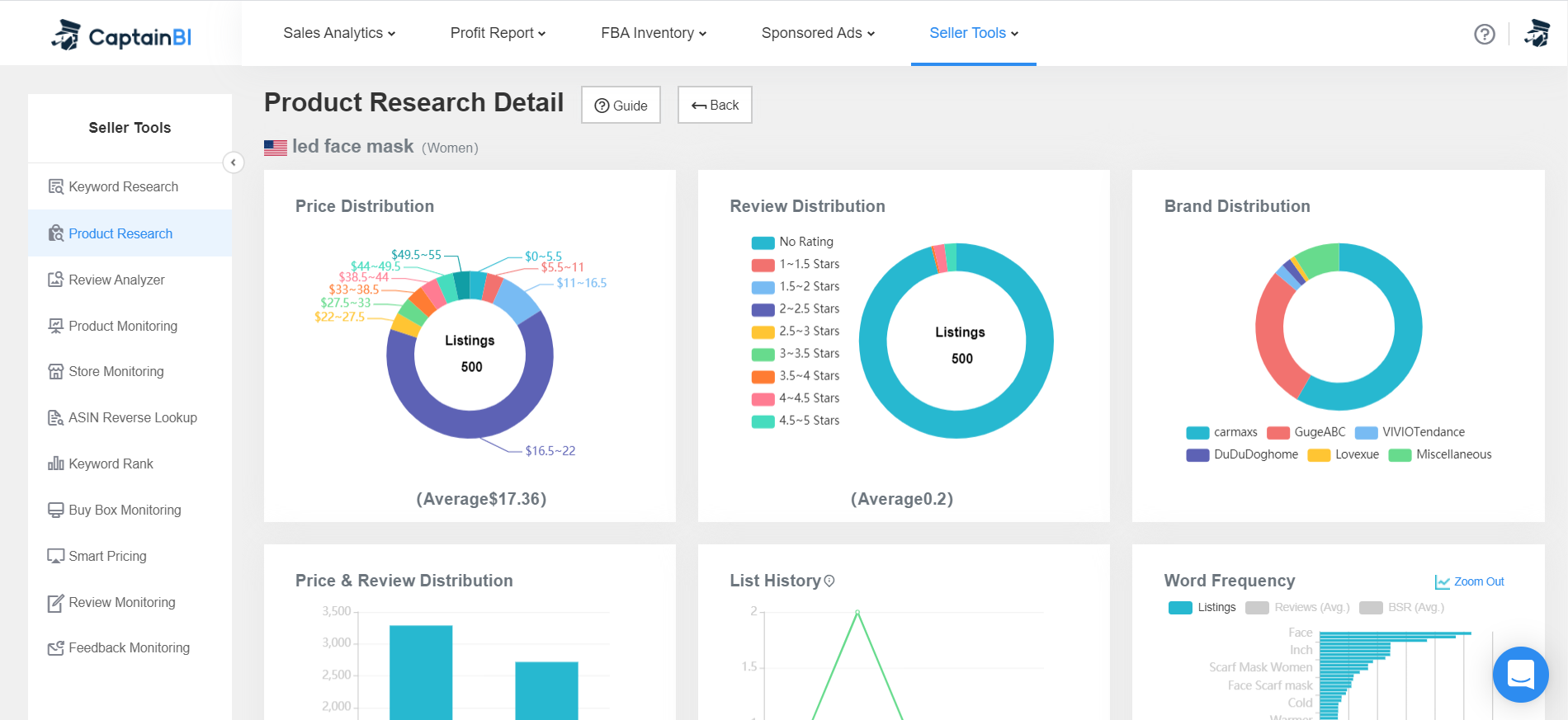 Captain BI is a one-in-one software for Amazon sellers. We provide more than 15 tools for Amazon sellers, including the keyword research tool, product research tool, sales analysis tool, ads manage tool, FBA manage tool, and profit report tool.