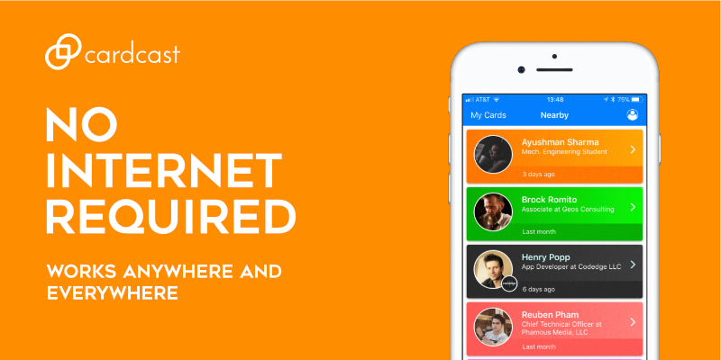 CardCast broadcasts your business card to everyone in the room with Bluetooth LE. Passively scan for other cards nearby. Literally the easiest business card app you could ever use.