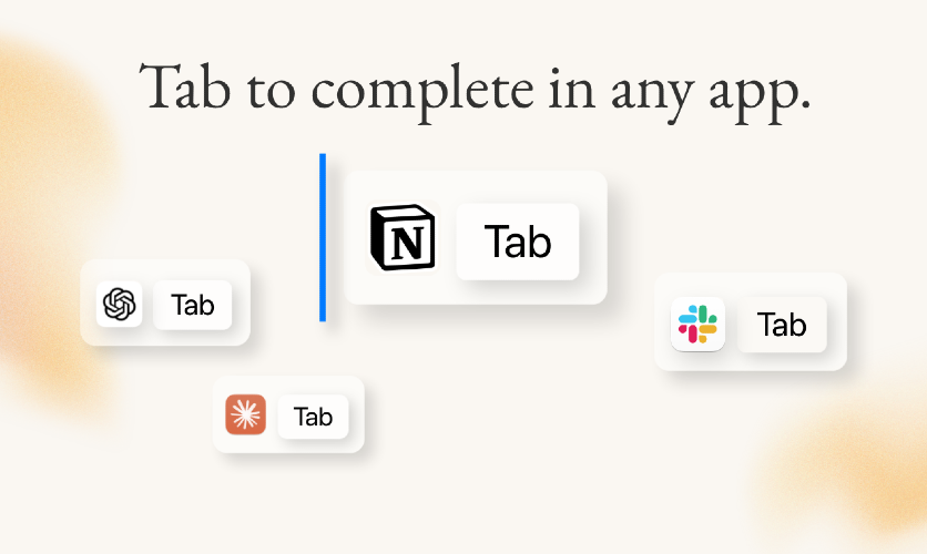 Tab to complete anywhere on your Mac. Caret is always on — it sees everything you do across all different apps, understands your work sessions, your chain of thought, and over time gets to know you. Caret appears in every text box and completes your thought. It writes your text messages, your emails, and prompts based on your context.