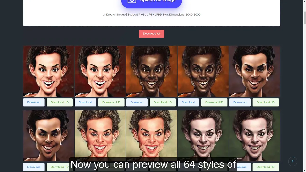 Caricaturer is an online caricature photo maker. It could produce 64 different caricature photos from your portraits based on AI technology. If you want to convert your face or portrait photo to caricatures, you can give Caricaturer a try. It may take some time but deserves the waiting. You can sign up for an account to receive the notification email. Caricaturer could caricature your portrait photos and create stunning effects online effortlessly. Powered by AI technology, the whole process is automatic and no fancy skills are required.