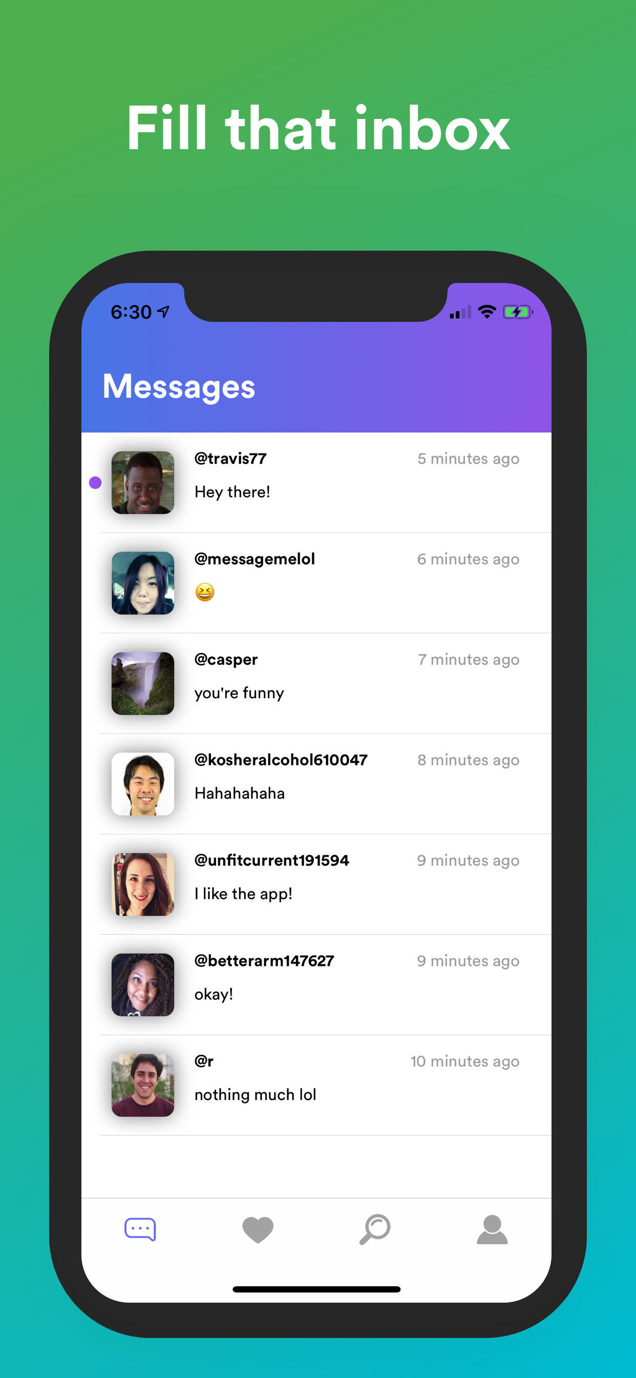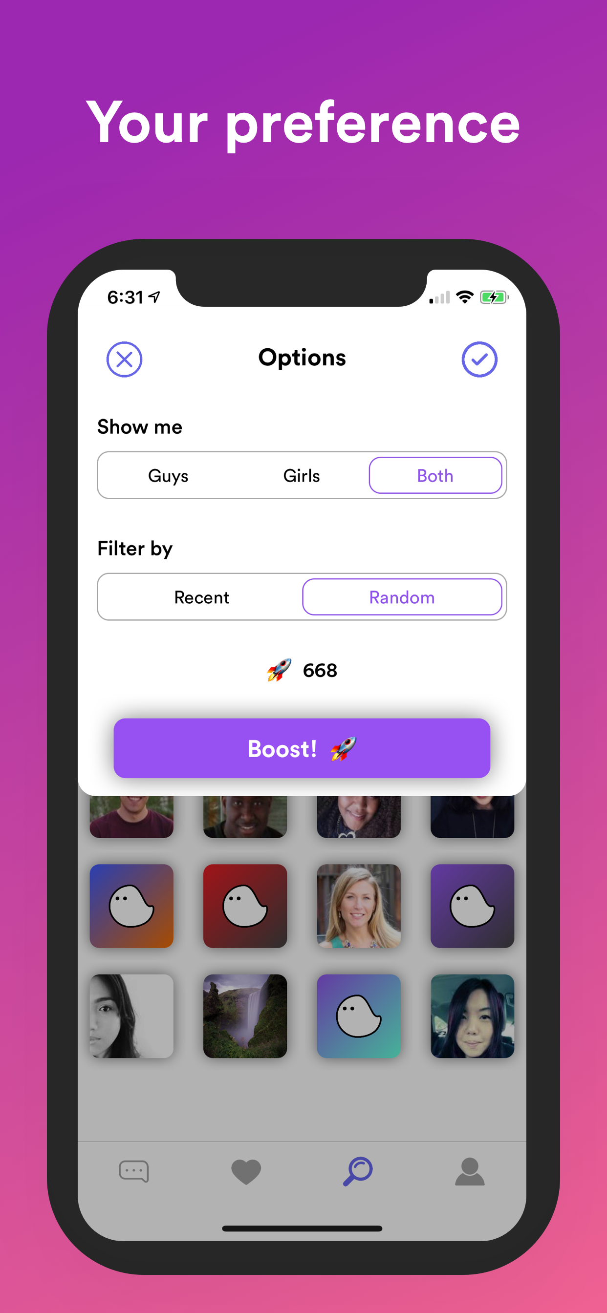 Casper is a simple, modern chat app with no surprises. You can meet new people, add them, and chat with them once they've added you back. If you want to be discovered easier, you can "boost" your profile for visibility. If you want to meet a lot of new people in a short amount of time, this is your app! This app is also open source, meaning everything about the app is completely transparent. Feel free to look it up on Github.