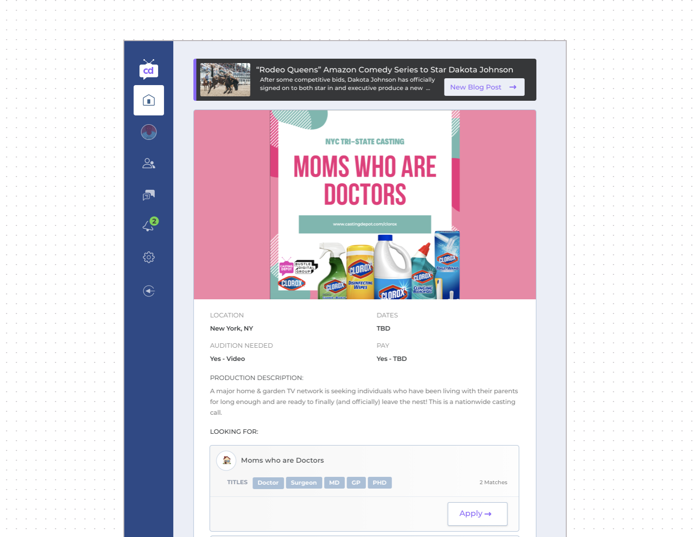 Imagine using a system with a craigslist-style interface, turnaround time, and user reliability to fill an urgent staffing need. That's the current status of the pre-production casting workflow. Our solution is a complete end-to-end casting marketplace that has the job search and professional networks functionality of LinkedIn - saving media professionals money and hours in lost productivity. We have a basic ($12.99/month) and premium ($15.99/month) model that charges to both sides of our marketplace - talent and media professionals.