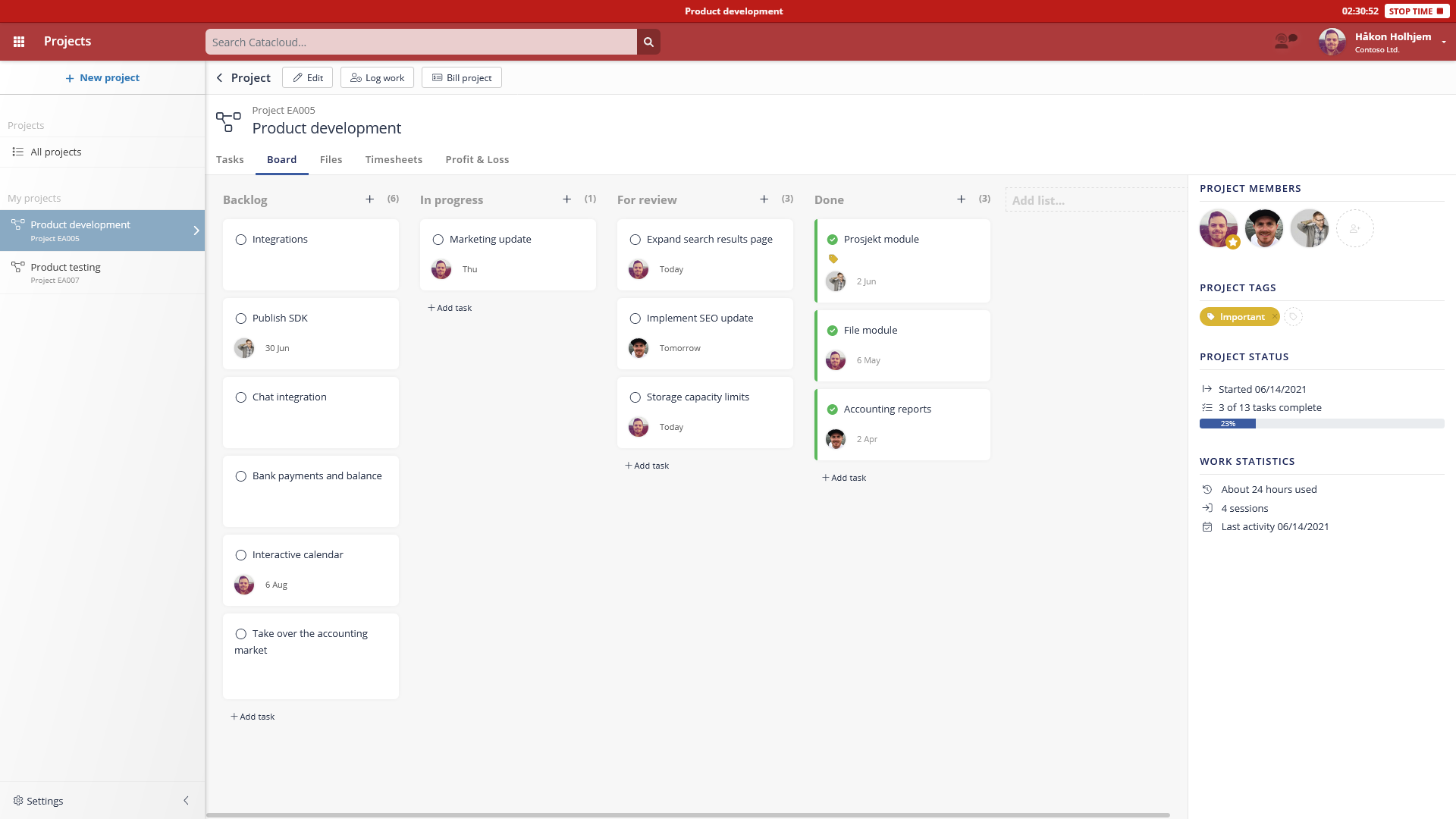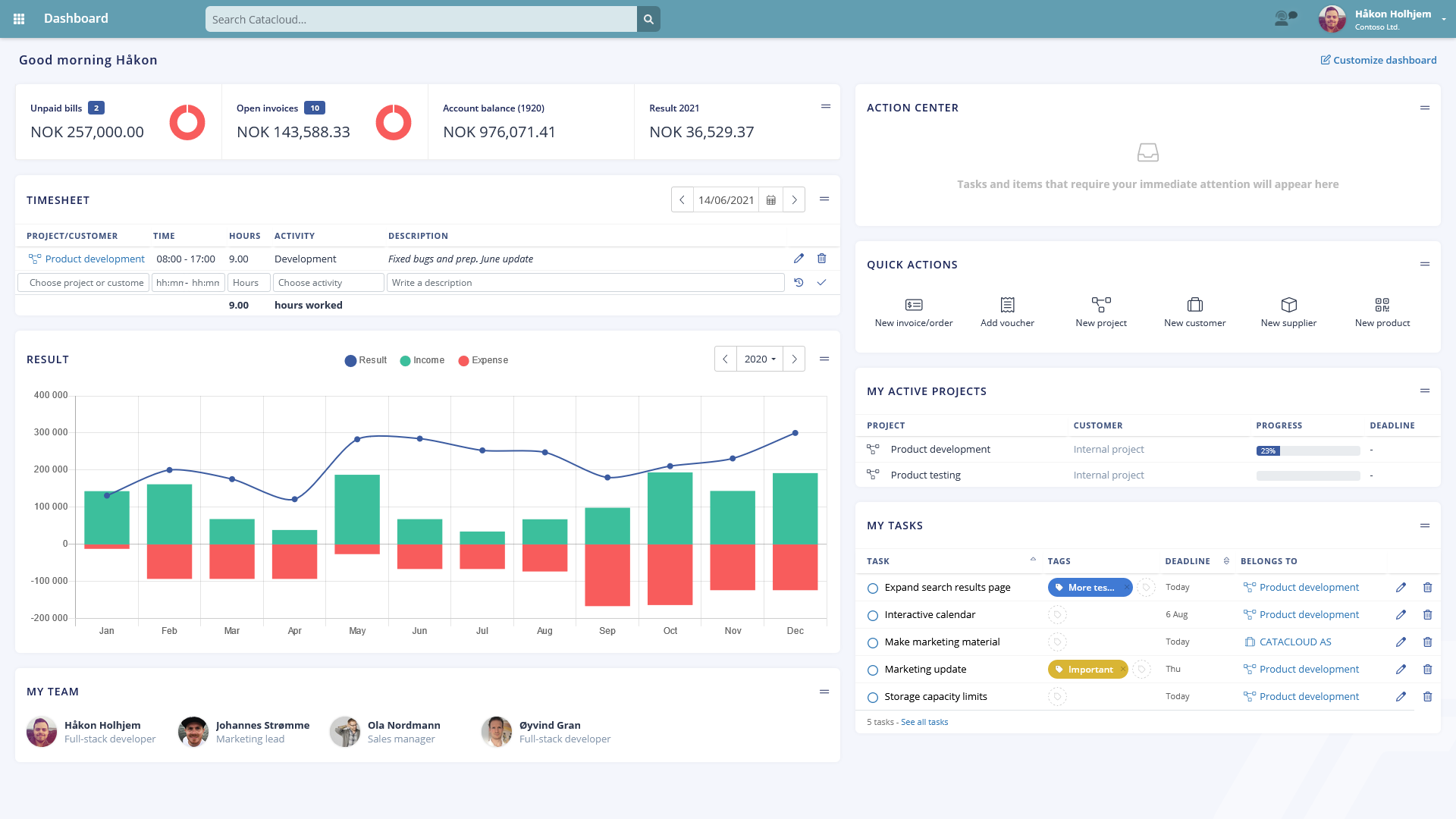 Catacloud is the next level in intuitive and smart accounting and ERP-systems. We gather the best tools in one platform for managing your business with bookkeeping, invoicing, project management, timesheets, files and more!