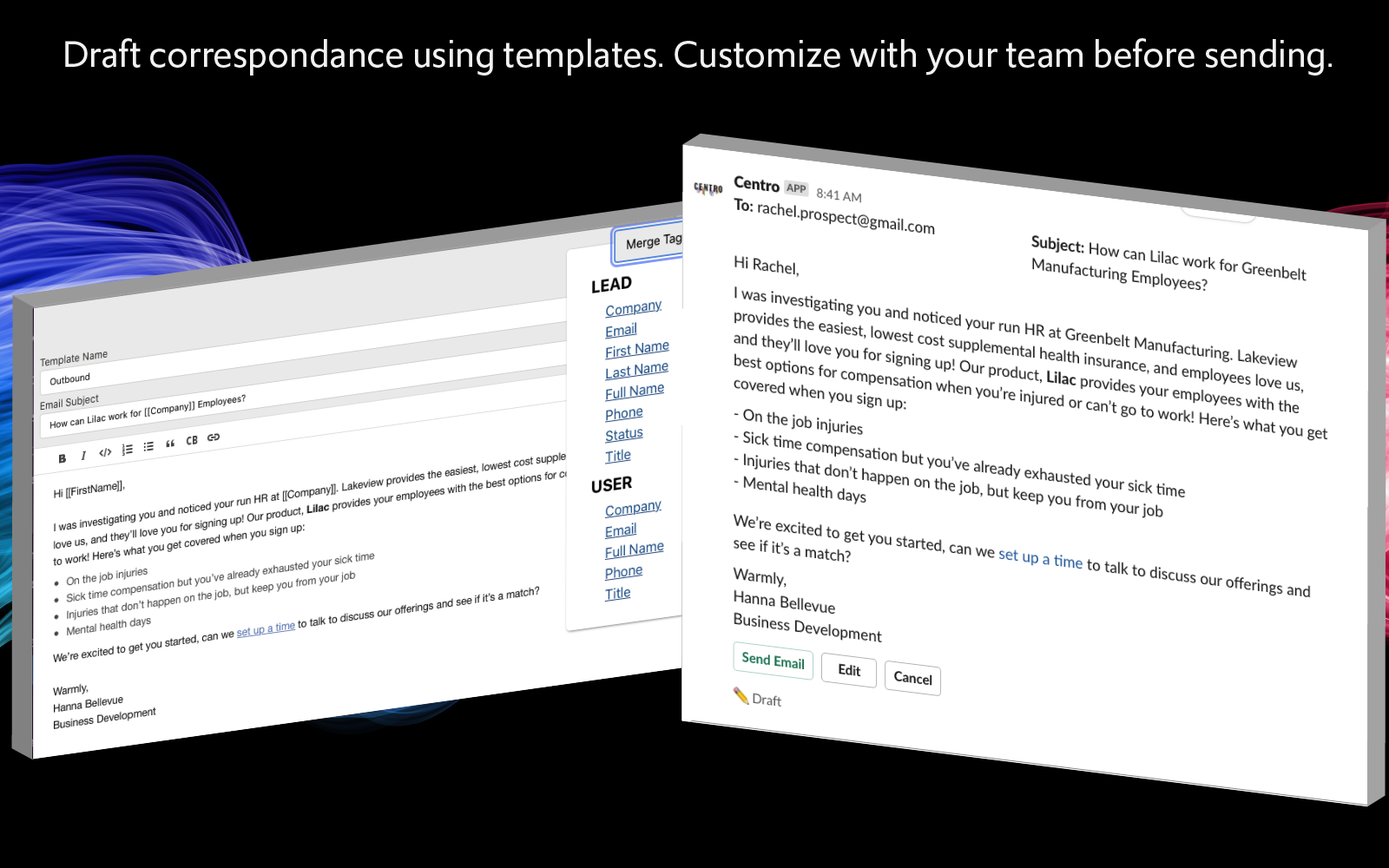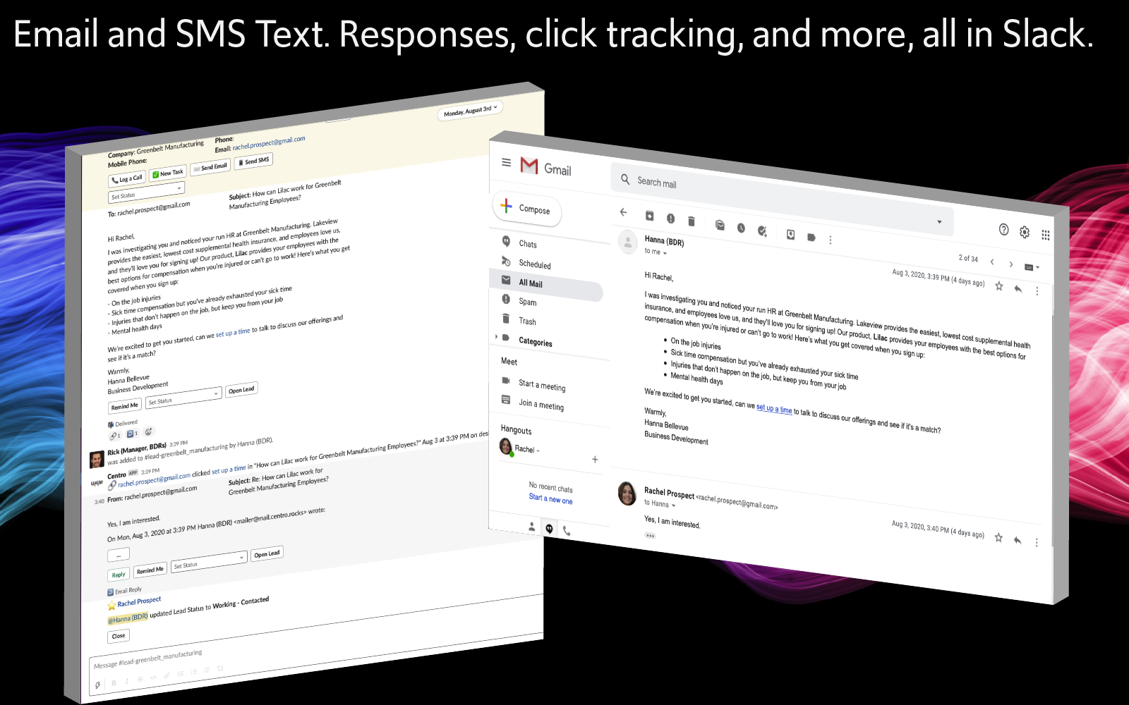 After building CRM products together for the last 10 years, we decided to start our own company solving sales problems in the Slack ecosystem. Centro is a shared inbox and Salesforce connector for revenue teams to thrive in Slack. Slack is where teams discuss customer requests, issues, and deal questions. Salesforce is the system of record and reporting. Email and SMS messages with the customer often done in a silo. Centro is bringing these 3 platforms together, where collaboration and responsiveness directly translates to time saved and higher customer satisfaction. Customer emails can be collaborated on, important deal info is shared, and Salesforce data can be updated in one place; Slack.