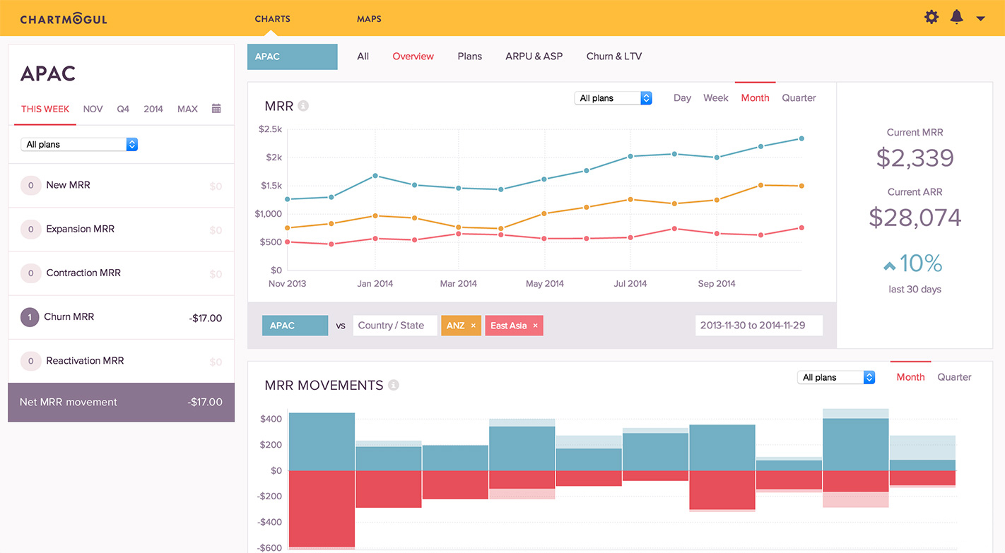 ChartMogul helps hundreds of subscription businesses extract value from their data; from large SaaS and media businesses to niche monthly gift box companies. With our all-in-one approach to analytics, teams don't need to worry about provisioning data warehousing, and can instead focus on what matters, tracking metrics and getting insights from their data.