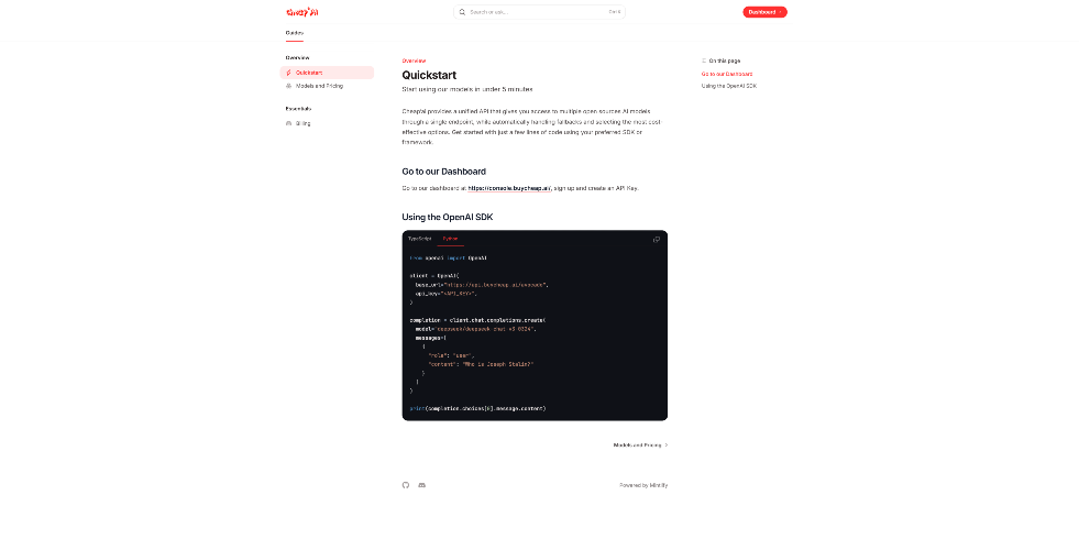 Whether you’re running a chatbot, an internal automation tool, or a customer-facing product, token costs can add up quickly. Cheap'ai helps reduce those costs with affordable LLM inference across the board. Get scalable, consistent performance at a lower price point. Cheap'ai is the platform built for those who want to get serious about saving. Cheap'ai is your reliable partner for reducing LLM token expenses. Our pricing structure is transparent and straightforward, helping you maintain cost visibility and control from day one. No matter how you use language models—content generation, support, analysis—Cheap'ai offers a smarter way to manage cost without losing performance.