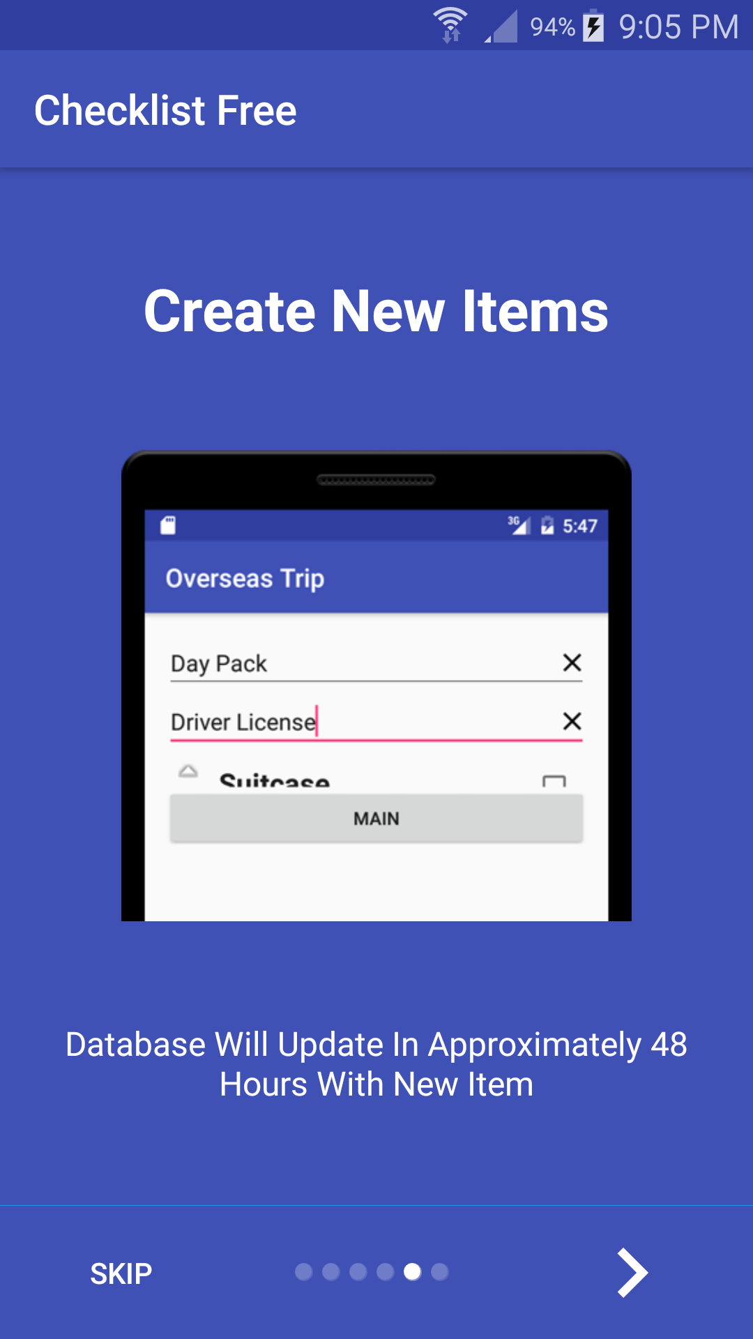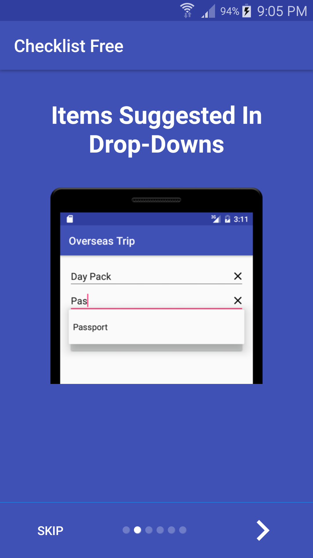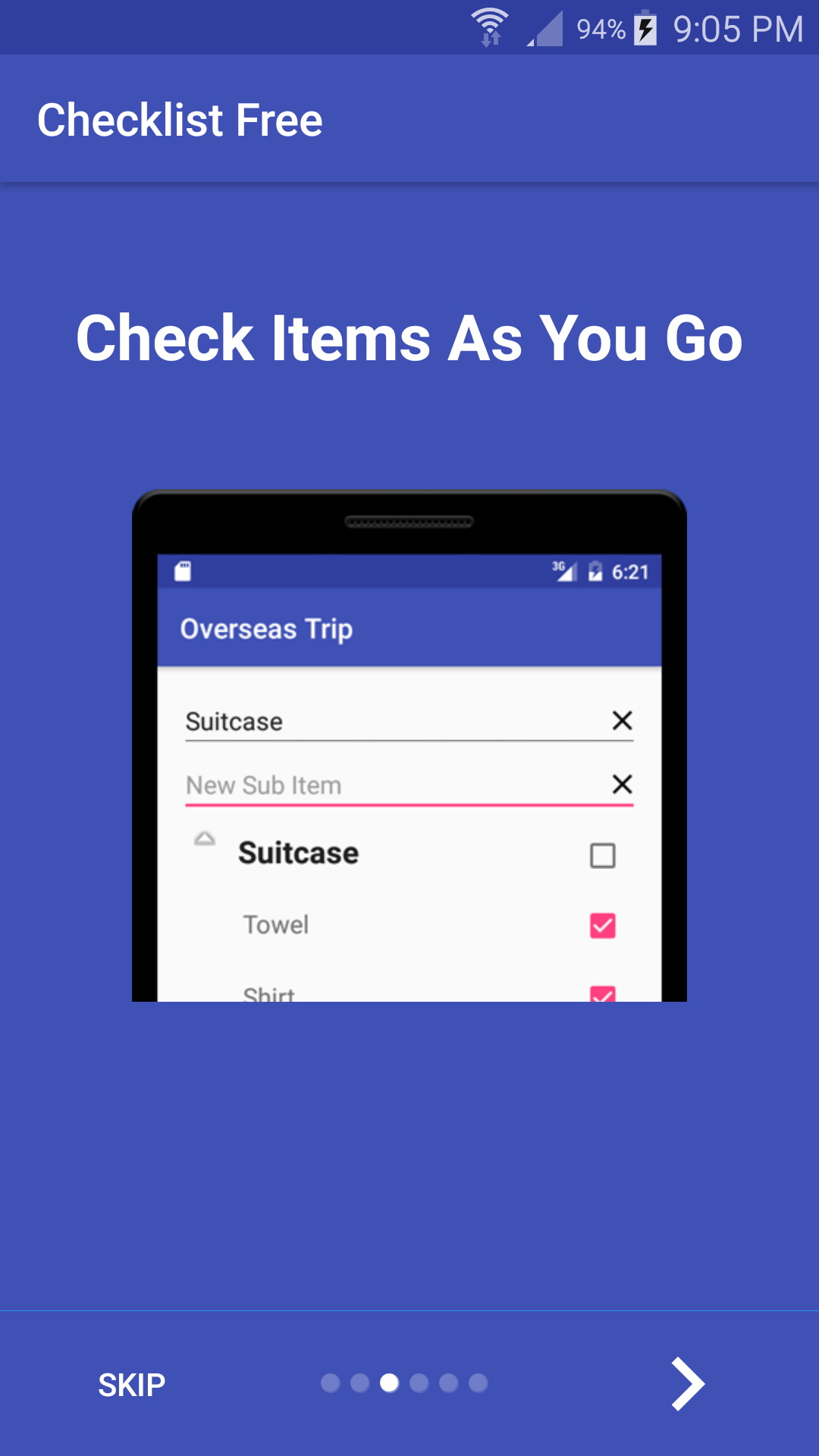 https://play.google.com/store/apps/details?id=com.creatix.checklistfree Note: Currently in alpha testing phase A smart checklist that remembers and suggests essential items. For any occasion, this app will recommend the right items for you to bring. Whether it is work, a holiday or recreational activity the recommendation will be made from a list of items compiled by all users. Please leave a review or send feedback to [email protected]