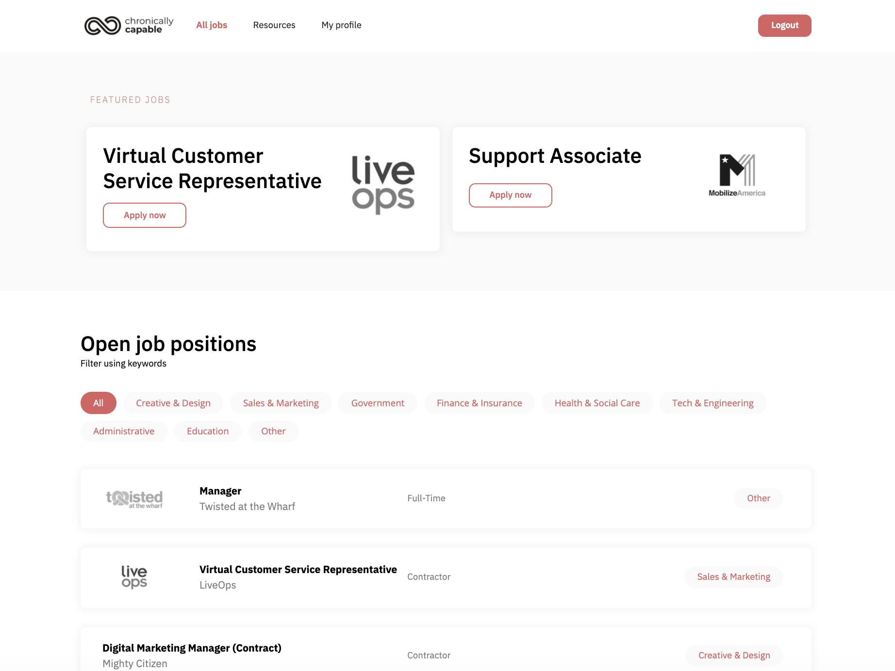 Chronically Capable is an employment platform that connects chronically ill professionals to companies looking to hire a digital workforce and meet the 7% utilization goal required under Section 503 of the Rehabilitation Act.