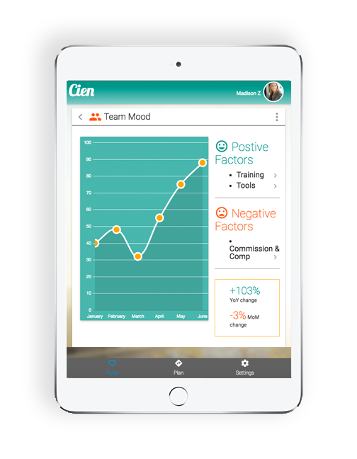 Cien is a mobile-first app that uses machine learning to increase sales productivity by predicting and suggesting the steps needed to close a sale.