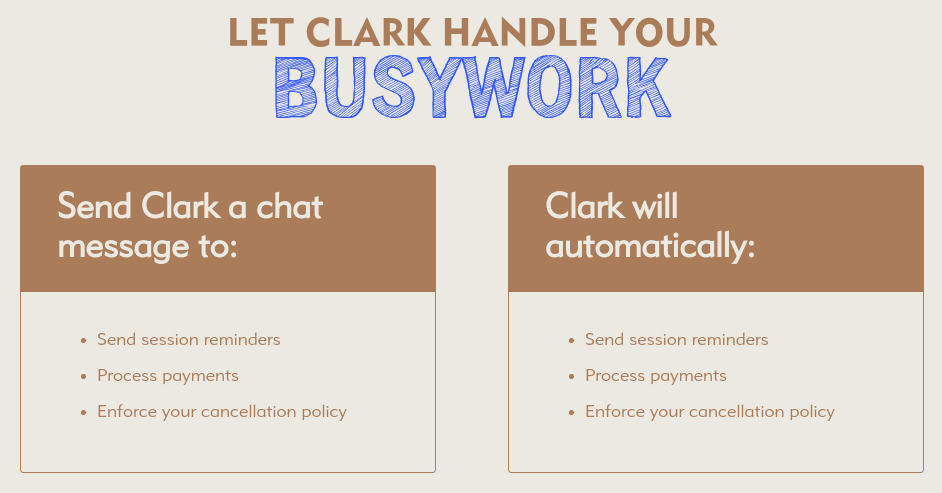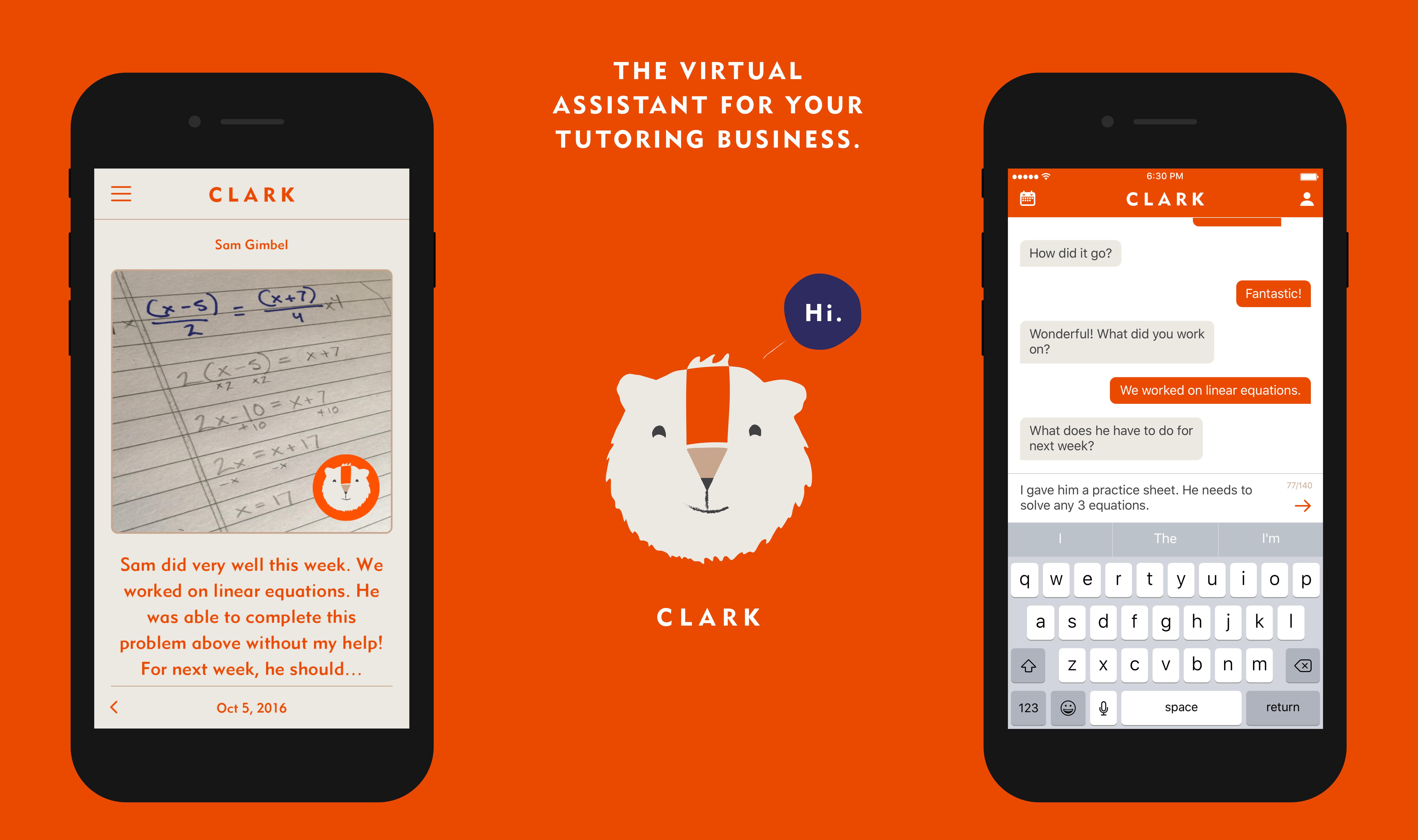 A VIRTUAL ASSISTANT FOR TUTORS Manage your tutoring business more efficiently with the Clark mobile app. The always-on virtual assistant will eliminate the time you waste on busywork, so that you can focus on tutoring and earn up to 25% more. Available now for iOS | Coming soon for Android.