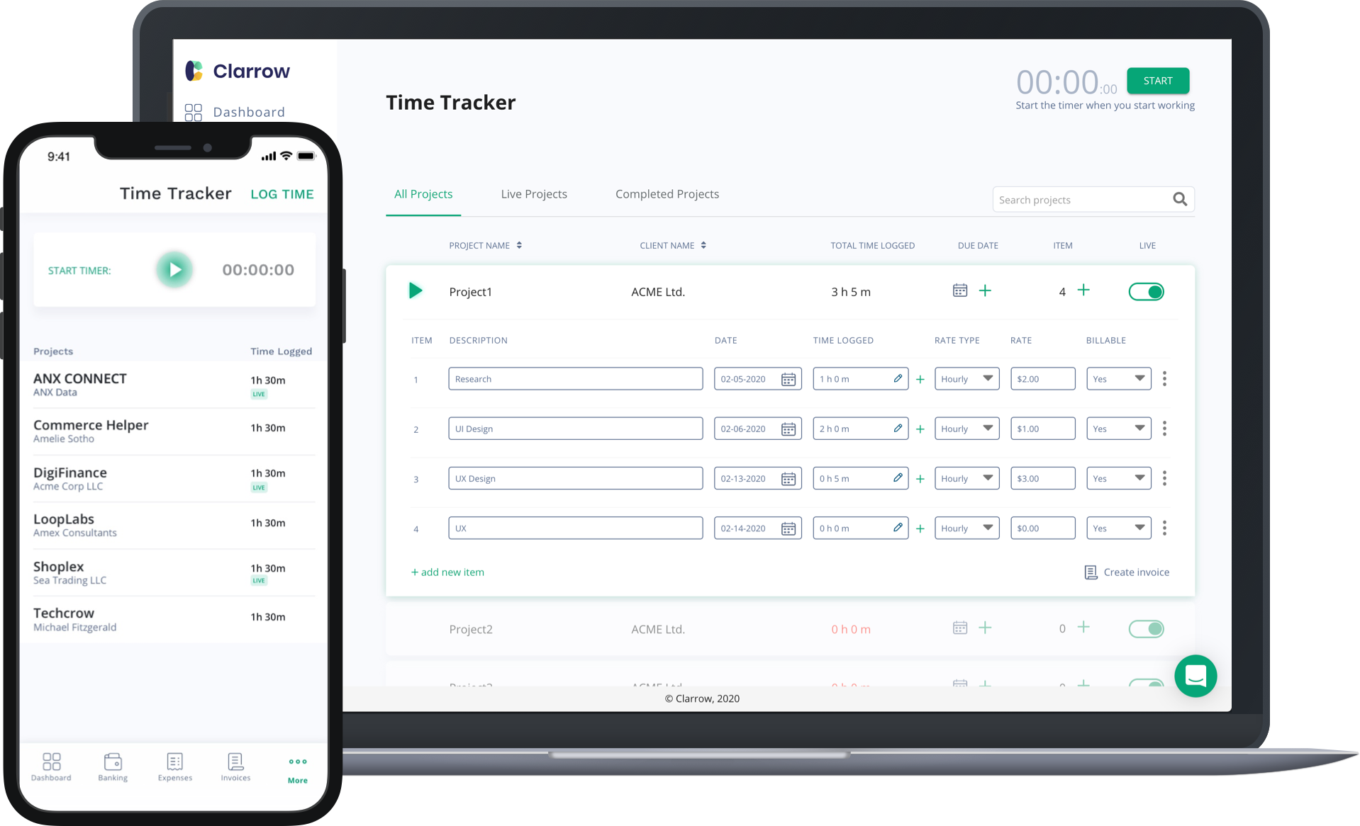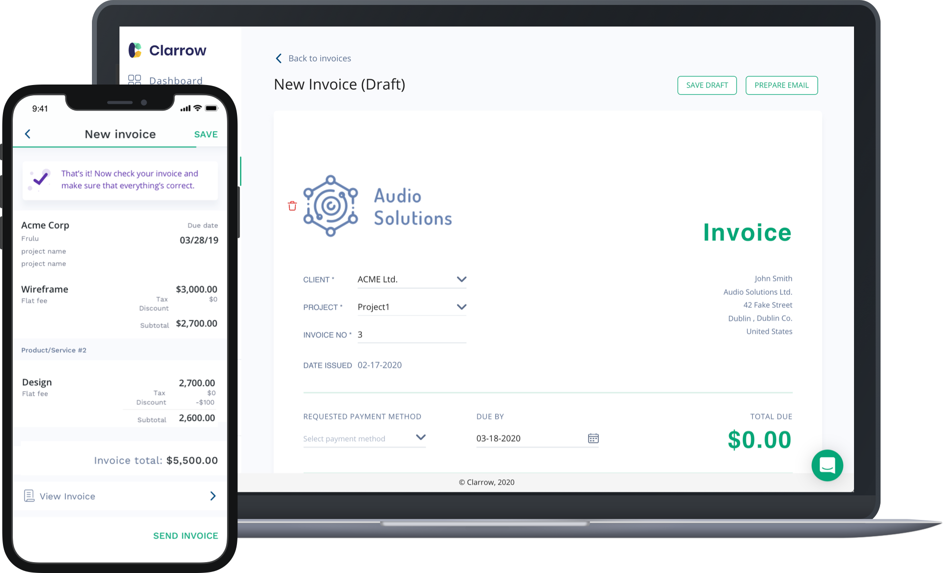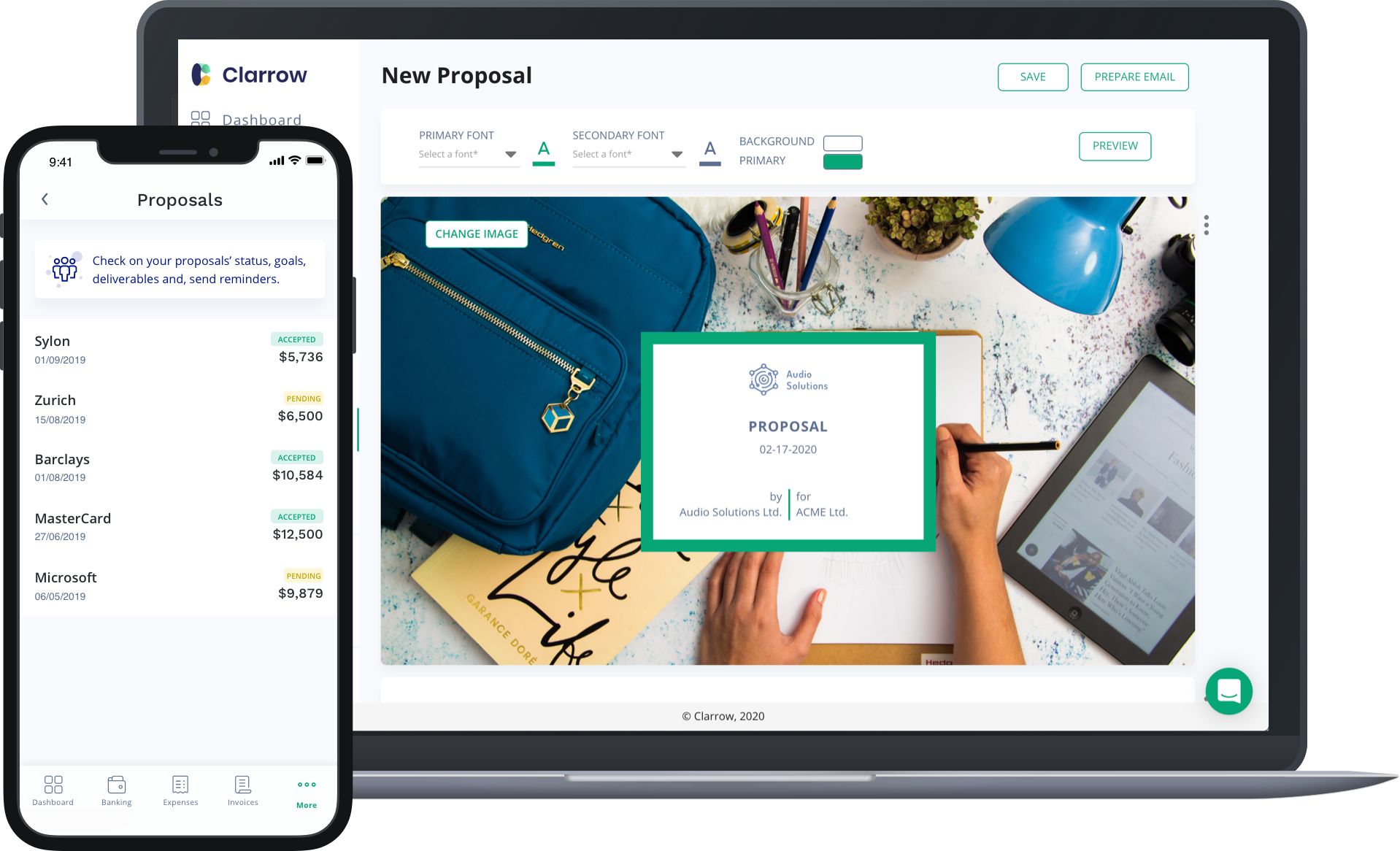 Clarrow is a business management tool with a singular purpose—to get you paid. Create polished proposals in a snap, lock in deals with official contracts, and collect what you deserve with professional invoices.