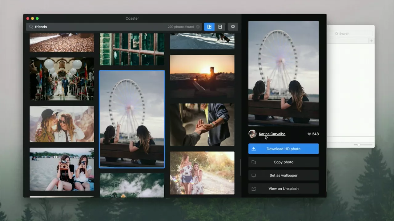 Coaster is a Mac app that makes it easier to search for photos from the massive library of free stock photos on Unsplash. You can quickly download HD photo or just copy regular size photo to clipboard to use in your favorite app like Sketch, Keynote and more. It also lets you easily set a photo as your wallpaper! More features coming soon ?