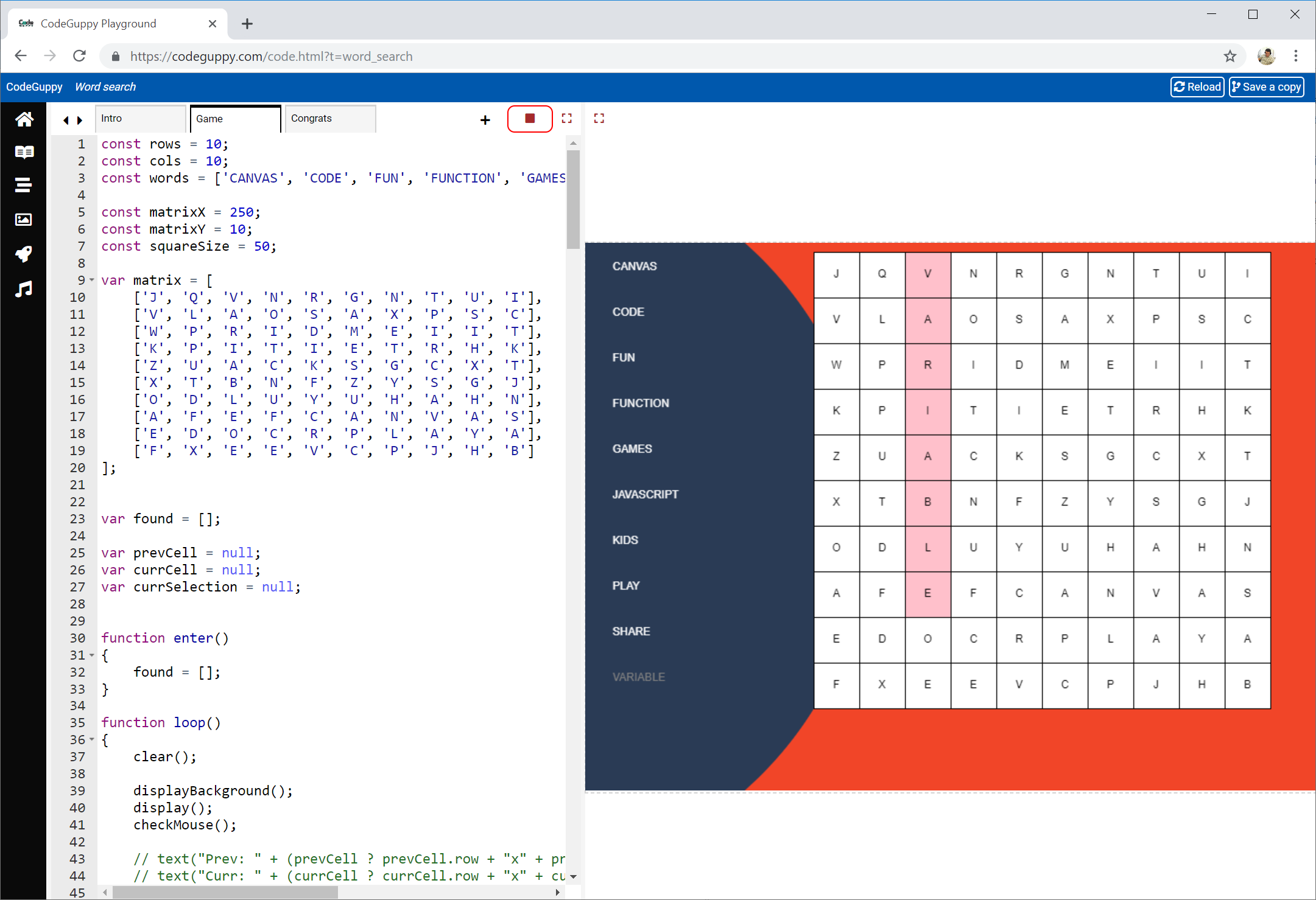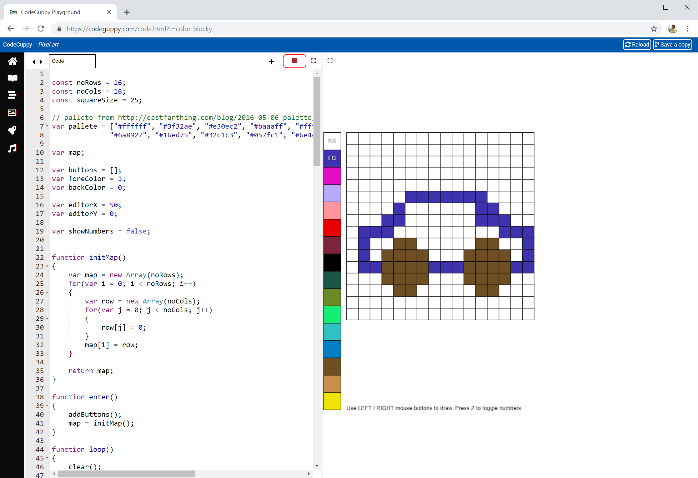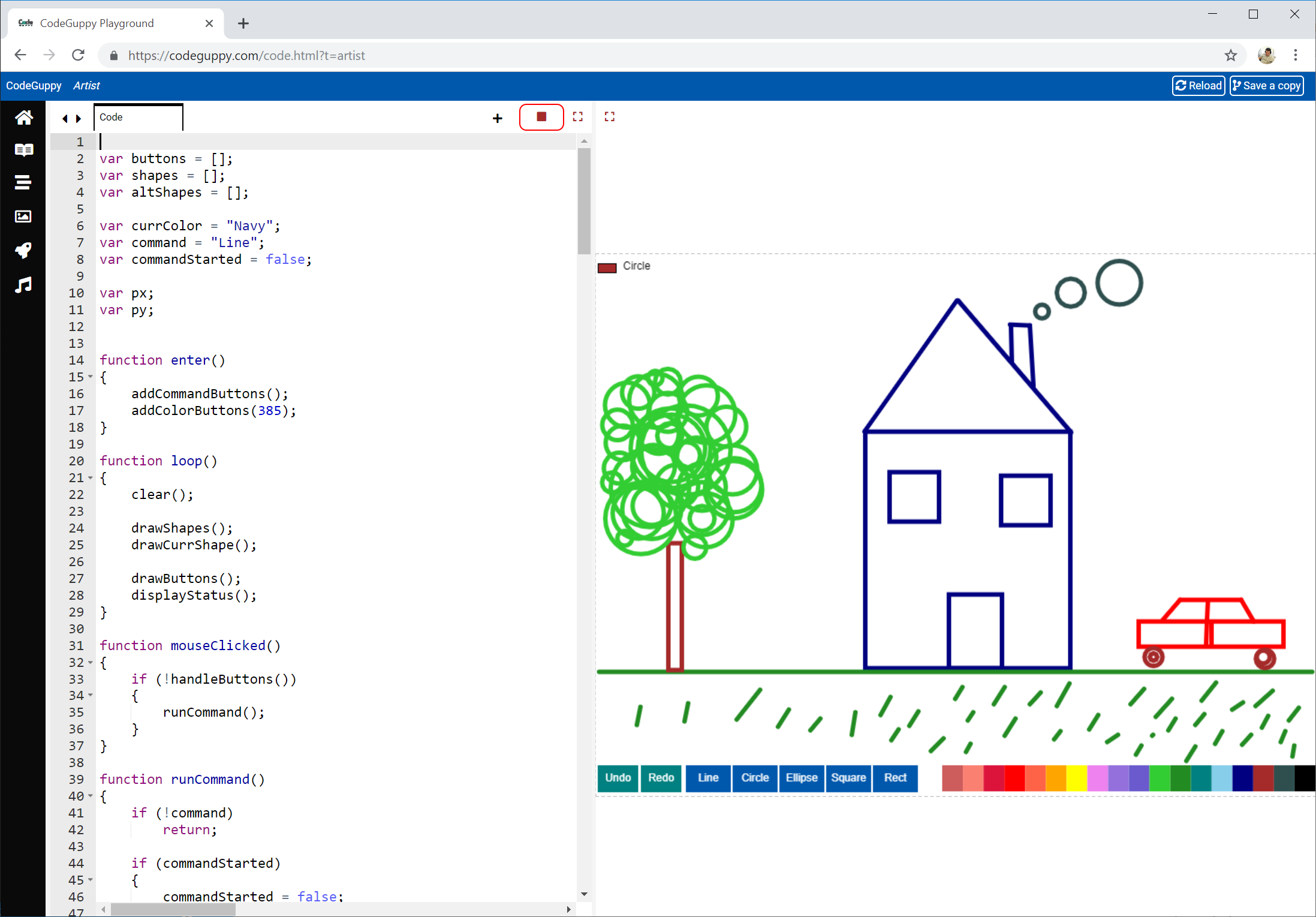 With codeguppy.com you'll learn to code real games and applications directly in the browser. You don't need to install any software on your local machine. Any Windows, Mac or Chromebook computer is perfect for CodeGuppy. To make coding fun and engaging, CodeGuppy comes with a full library of animated characters, background images, and sounds that you can be used in games and applications. Code remixing and sharing as well as game reskinning are highly encouraged on CodeGuppy.