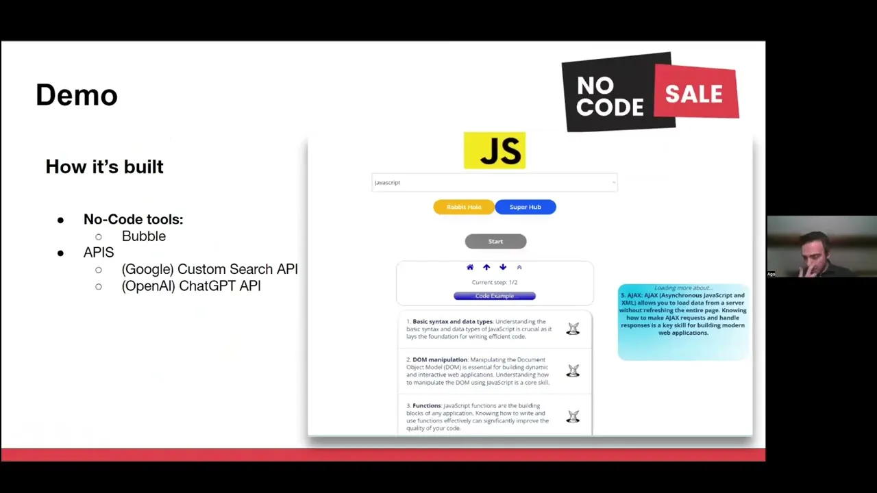 CodeMentorGPT is a tool that helps busy programmers with family to learn new programming languages quickly and easily. It provides 2 ways to learn: 1) Rabbit Hole mode: you ask to AI to show you 5 key concepts about a programming language you choose. And you can iterate this, and go deeply into any of the 5 concepts. 2) You have a LOT of resources links at your fingertips, so you don't waste time My pitch https://youtu.be/87Gcwz0kRC4