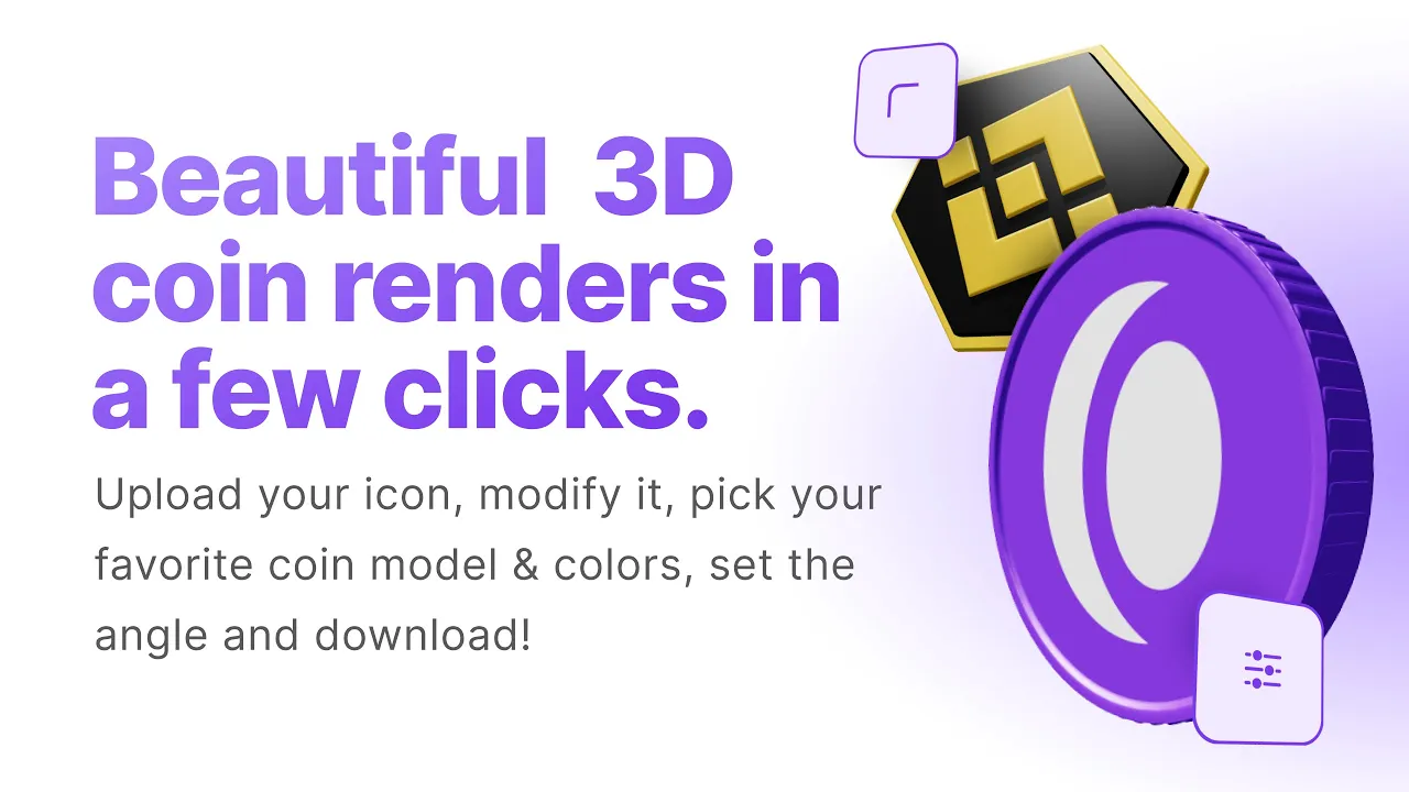 CoinRender is a web tool that allows you to create stunning 3D crypto coin marketing assets from your logos. Cut production costs and delivery time by up to 75%. Supporting PNG and SVG logos.